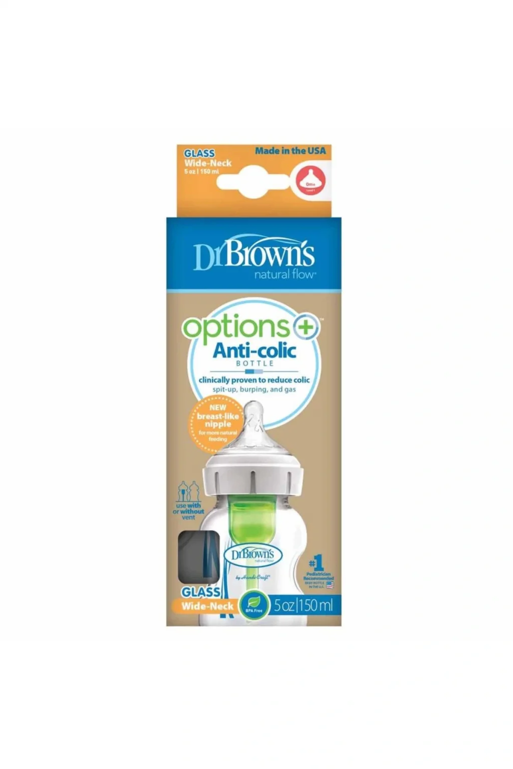 Dr Brown's Geniş Ağız Cam Biberon 150ml (Yeni) Özellikleri; Tüm biberonlarımız (0-3 ay) biberon emziğiyle yenidoğana uygun olarak satılır.; Borosilikat camdan üretilmiş olup , ısıya ve termal şoka dayanıklıdır; sıcak,soğuk ve kademeli sıcaklık değişikliklerine dayanır.; BPA içermeyen, patentli Dr.; Brown's Options+ Serisi biberonlar; gaz sancıları, tükürük ve geğirmeyi azalttığı ve besindeki C, A ve E vitaminlerini koruduğu klinik çalışmalar ile doğrulanmıştır.; Anne memesine benzeri şekli,