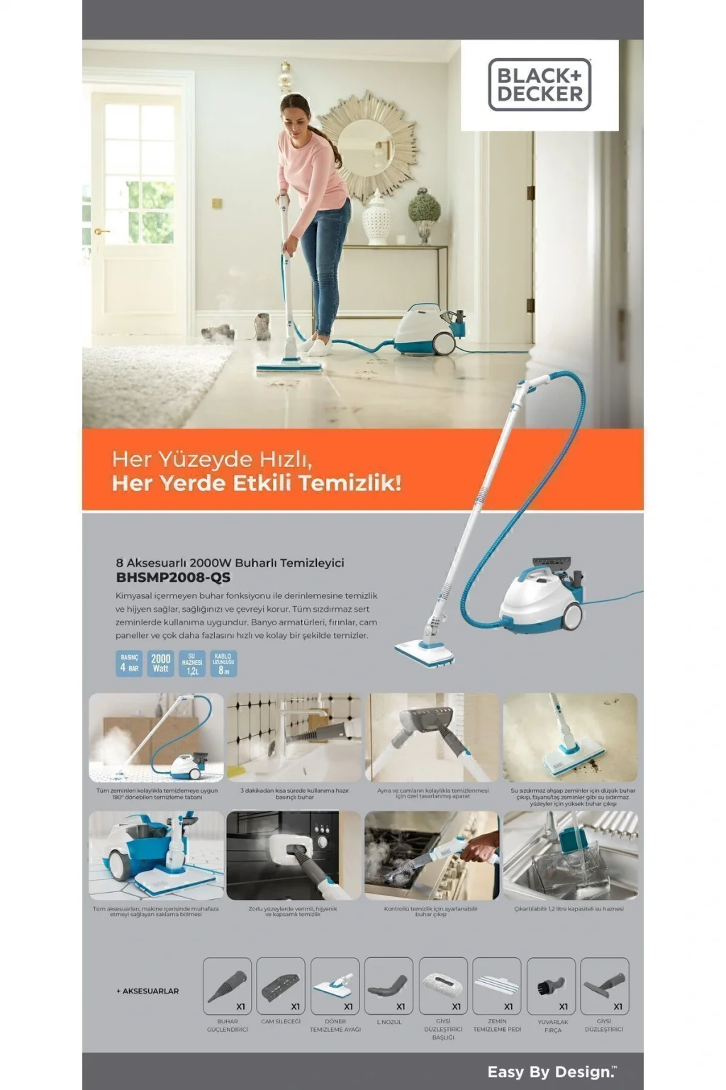 Genel Ürün BHSMP2008-QS 2000W Basınçlı Buharlı Temizleyici – 8 Aksesuarlı, Çok Amaçlı Temizlik