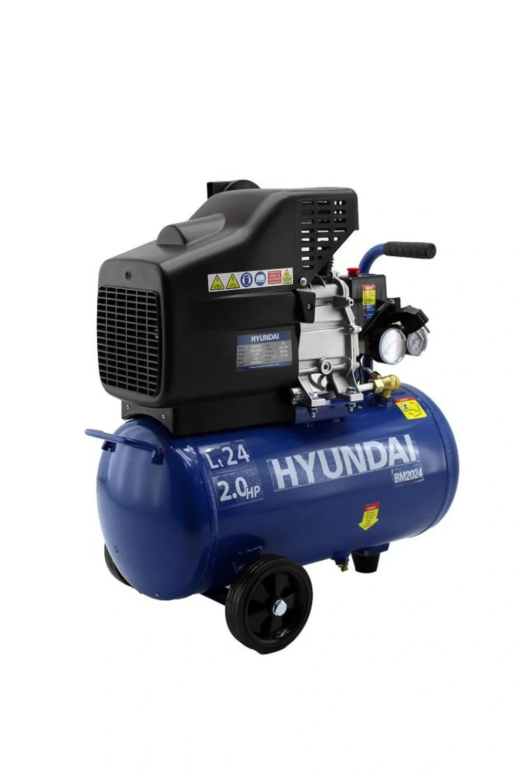 Hyundai BM2024 Hava Kompresörü 24 Lt; 2; 0 Hp Tip: Yağlı Maks; Motor Gücü: 1; 5 kW/2; 0 Hp Voltaj: 220V 50 Hz Maksimum Debisi: 180 L/min Motor Devir Hızı: 2850 rpm Tank Kapasitesi: 24 Litre Çalışma Basıncı: 8 Bar Ağırlık (Net/Brüt): 19; 5 / 21 kg; Hyundai kalitesi ve ITAL A; Ş güvencesiyle Türkiye çapında yaygın servis ağı ve bol yedek parça 2 yıl garanti;