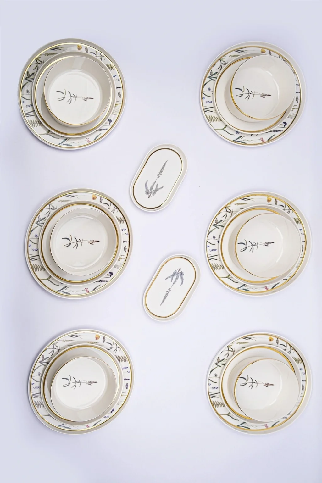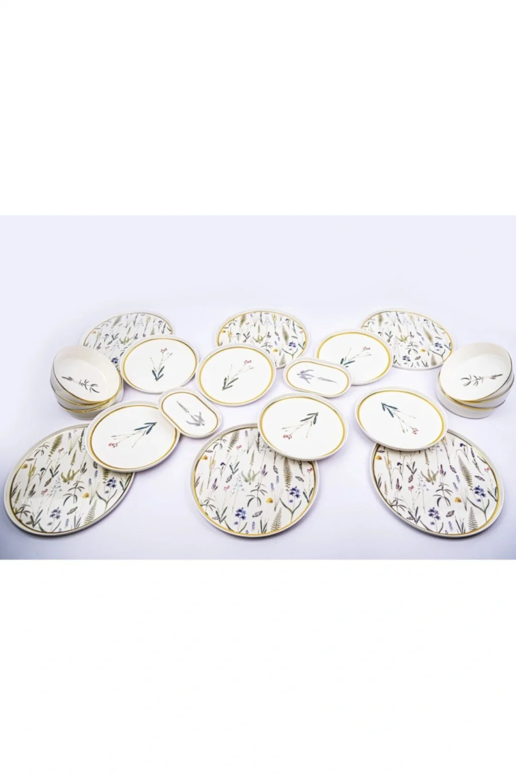 "PAKET İÇERİĞİ; 6 Adet 27cm Tabak, 6 Adet 21cm Tabak, 6 Adet 16cm Kase, 2 Adet 18cm Kayık Tabak. Kırlardaki yabani çiçeklerin bir araya gelmesiyle oluşan zarif desenler, Porland’ın en yeni formundaki tabaklarında hayat buluyor. BOTANICAL Koleksiyonu’nda yer alan menekşe, lavanta, kelebek gibi desenler, sofralarınızda adeta bir doğa şöleni yaşatıyor.Koleksiyon, bahar renkleri ile minimal esintiler taşırken; doğal formu ve kendinden dokulu yapısı ile yaşam alanlarınızı canlandırıyor. Porland’ın özel reçetesi ile Alumilite Porselen olarak üretilen koleksiyonda, günlük yemek servisleri, kahvaltı ve ikram ürünleri bulunuyor. Kullanım Talimatı; Bulaşık makinesinde yıkanması tavsiye edilmez, elde yıkanmalıdır. Fırında kullanılabilir, mikrodalga fırın kullanımına uygun değildir."