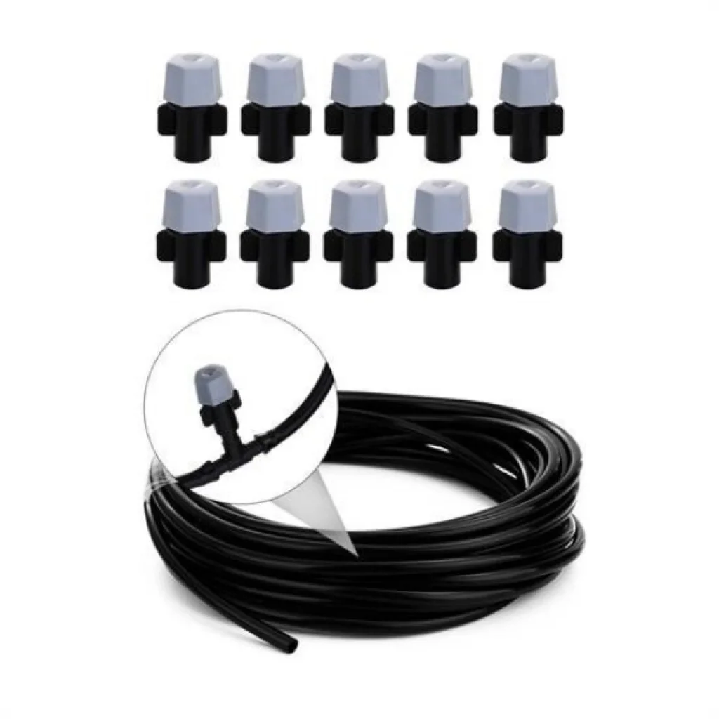 10 METRE KENDİN YAP AÇIK ALAN SERİNLETME VE NEMLENDİRME SİSTEMİÜrün Özellikleri10 metre kendin yap açık alan serinletme ve nemlendirme sistemi, sıcak havalarda açık alanlarda ferahlatıcı bir ortam oluşturmak için tasarlanmış pratik ve etkili bir çözümdür. Sistem üzerinde 1 metre aralıklarla konumlandırılmış toplam 10 adet püskürtme ucu bulunur ve bu yapı sayesinde geniş alanlara dengeli şekilde ince su buharı yayılır. Damla sulama mantığıyla çalışan özel tasarımlı nozullar, tıkanmayı önlemeye yardımcı olan dahili filtreye sahiptir ve uzun süreli kullanımda performansını korur. Kolay temizlik için çıkarılabilir nozzle yapısı sayesinde bakım işlemleri zahmetsizdir. Tarım alanları, çim ve bahçeler, avlular, seralar, yüzme havuzu çevreleri, çardaklar ve asma altları gibi birçok açık alanda hem serinletme hem de nemlendirme amacıyla kullanılabilir. Kendin yap kurulum yapısı sayesinde hortumdan kesme, ekleme ve bağlantı işlemleri basit adımlarla tamamlanır ve mevcut musluk sistemlerine kolayca uyum sağlar. Açık alanlarda konforu artıran bu sistem, yaz aylarında hem bireysel hem de ticari kullanımlar için idealdir.Paket İçeriği10 metre kurulumu yapılmış serinletme ve nemlendirme hortumu1 adet yedek nozzle2 adet yedek ekleme atı5 adet plastik kelepçe1 adet hortum adaptörü