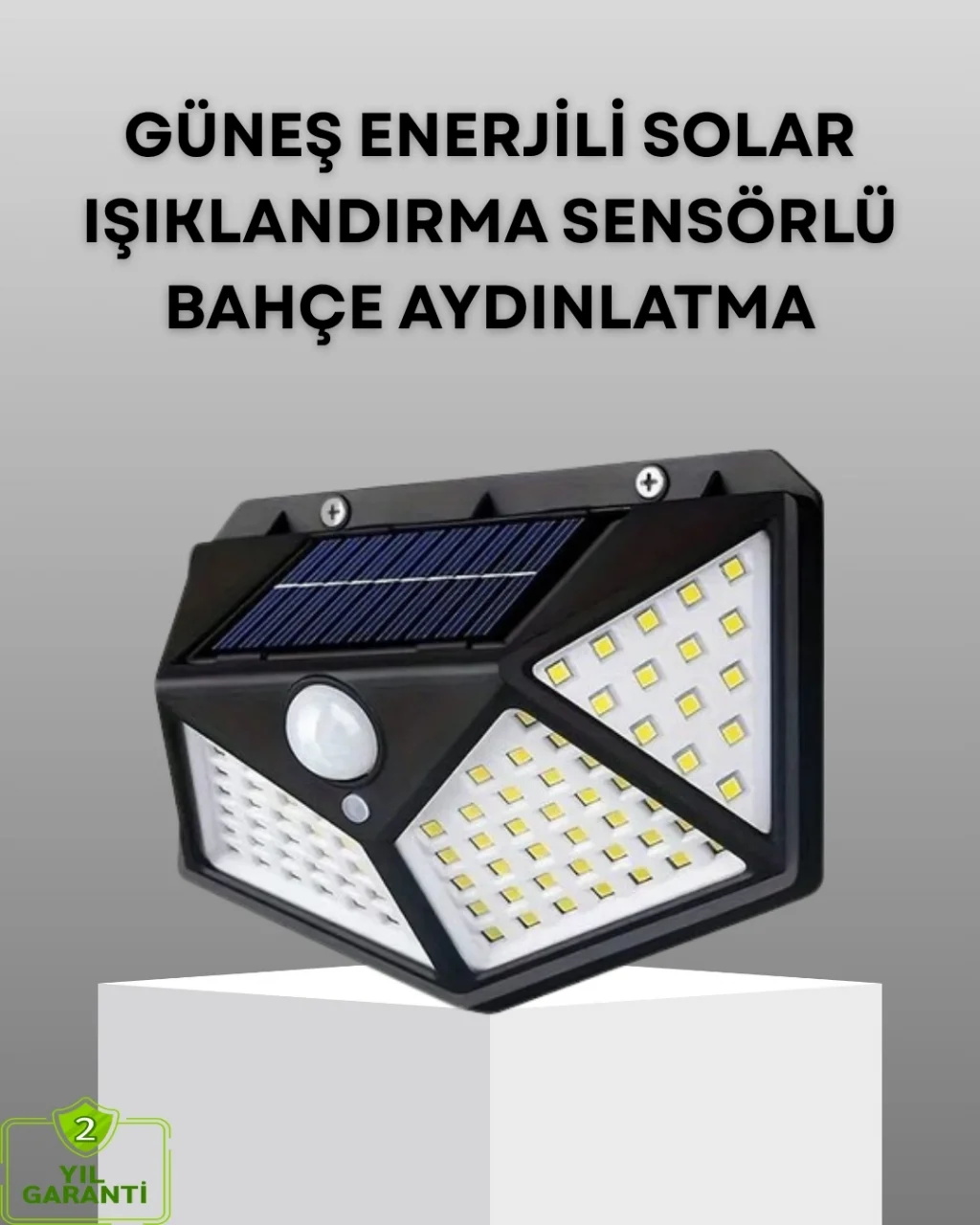 Güneş enerjili bu solar bahçe lambası, dış mekanlarda hem güvenliği hem de enerji tasarrufunu artırmak isteyen kullanıcılar için ideal bir aydınlatma çözümüdür. Üzerindeki güneş paneli sayesinde gün boyunca güneş ışığını depolayarak gece saatlerinde hiçbir elektrik masrafı olmadan çalışır. Bu özellik hem bütçe dostudur hem de çevreye duyarlı bir kullanım sunar. Ürün tamamen kablosuz olduğu için montajı oldukça pratiktir; yalnızca birkaç vida ile duvara sabitlenebilir ve kullanım için ek bir bağlantıya ihtiyaç duymaz.100 LED’li güçlü ışık kaynağı, geniş bir alanı homojen şekilde aydınlatarak dış mekanlarda mükemmel bir görüş sağlar. Hareket sensörü, lambayı yalnızca bir hareket algılandığında yüksek modda çalıştırır; bu da hem güvenliği artırır hem de enerji kullanımını minimuma indirir. Sensör algılama süresi boyunca etrafı parlak bir ışıkla aydınlatır ve belirli bir sürenin ardından tasarruf moduna geçer.Ürün, dış mekan koşullarına dayanıklı şekilde tasarlanmıştır. Yağmur, rüzgar, kül, toz gibi olumsuz hava şartlarına karşı yüksek dayanıklılık gösterir. Bu sayede yıl boyunca bahçe, teras, veranda, garaj önü, bina girişi veya bahçe yollarında rahatlıkla kullanılabilir.Modern tasarımı estetik bir görünüm sunar ve dış mekan dekorasyonuna uyum sağlar. Enerji verimliliği, otomatik çalışma sistemi ve güçlü LED performansı sayesinde kullanıcıların ihtiyaç duyduğu hem güvenlik hem de pratik aydınlatma imkanını bir arada sunar. Hareket sensörlü yapısı ile hem güvenli hem ekonomik bir dış mekan aydınlatması arayan herkes için ideal bir tercihtir.
