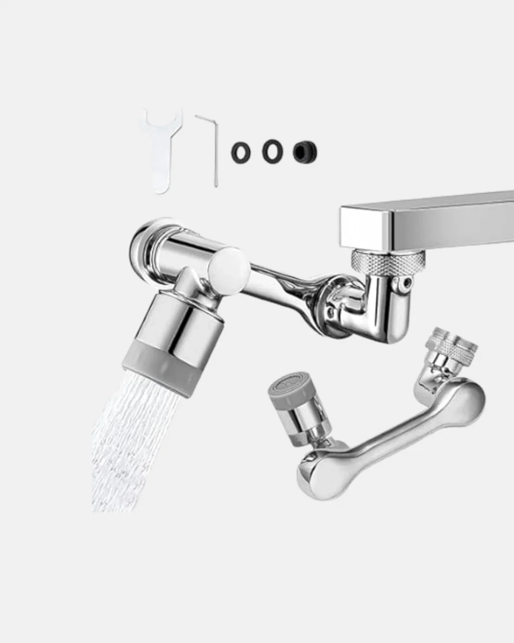 Gelişmiş 1080° döner başlıklı musluk aparatı, günlük yaşamda su kullanımını daha konforlu hale getirir. 360° üst ve alt eksen dönüşü sayesinde suyu lavabonun her noktasına yönlendirebilir, temizlikte zorluk çekmeden etkili bir yıkama elde edebilirsiniz. Geniş açılı tasarımı sayesinde büyük tencereleri veya lavaboyu durulamak artık çok kolay. Yüksek kaliteli paslanmaz çelik ve pirinç malzemeden üretilmiştir; paslanmaz, dayanıklı ve uzun ömürlüdür. Musluk ucundaki filtreli perlatör, suyu hava ile karıştırarak hem güçlü hem de yumuşak bir akış sağlar. Bu sayede %30’a varan su tasarrufu elde edilir. Şık krom kaplamasıyla modern bir görünüm kazandırır. El-yüz yıkama, sebze temizliği ve lavabo durulama işlemlerinde maksimum hijyen ve rahatlık sunar. Evde profesyonel düzeyde konfor isteyenler için mükemmel bir çözümdür.