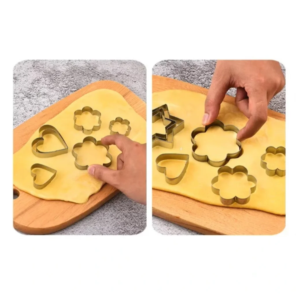 12 ADET PASLANMAZ ÇELİK KURABİYE KALIBI SETİÜrün Özellikleri12 adet paslanmaz çelik kurabiye kalıbı seti, dayanıklı ve hijyenik yapısıyla mutfakta pratik kullanım sağlar. Kalpler, yıldızlar, çiçekler ve daireler gibi 4 farklı şekli bulunan bu set, her şeklin üç farklı boyutuyla toplam 12 parçadan oluşur. Yalnızca kurabiye hamuru için değil, aynı zamanda sebze, meyve, yumurta veya hamur işi sunumlarında da yaratıcı biçimlendirmeler yapmanıza imkân tanır. Paslanmaz çelik yapısı sayesinde uzun ömürlü kullanım sunar ve kolay temizlenir. Pürüzsüz kenarları sayesinde güvenli bir kullanım deneyimi sağlar. Evde, kafelerde veya pastanelerde dekoratif sunumlar yapmak isteyenler için ideal bir yardımcıdır.Paket İçeriği1 adet 12’li paslanmaz çelik kurabiye kalıbı seti