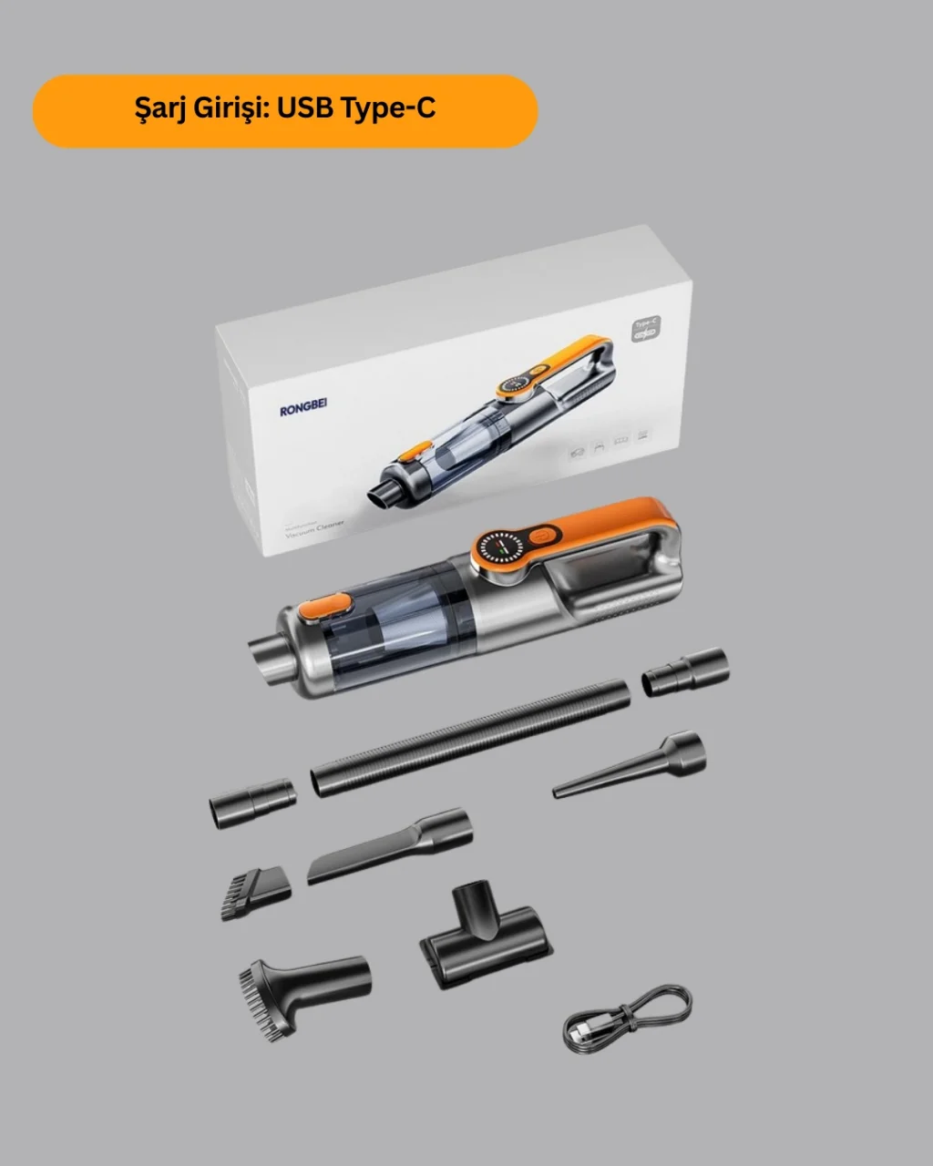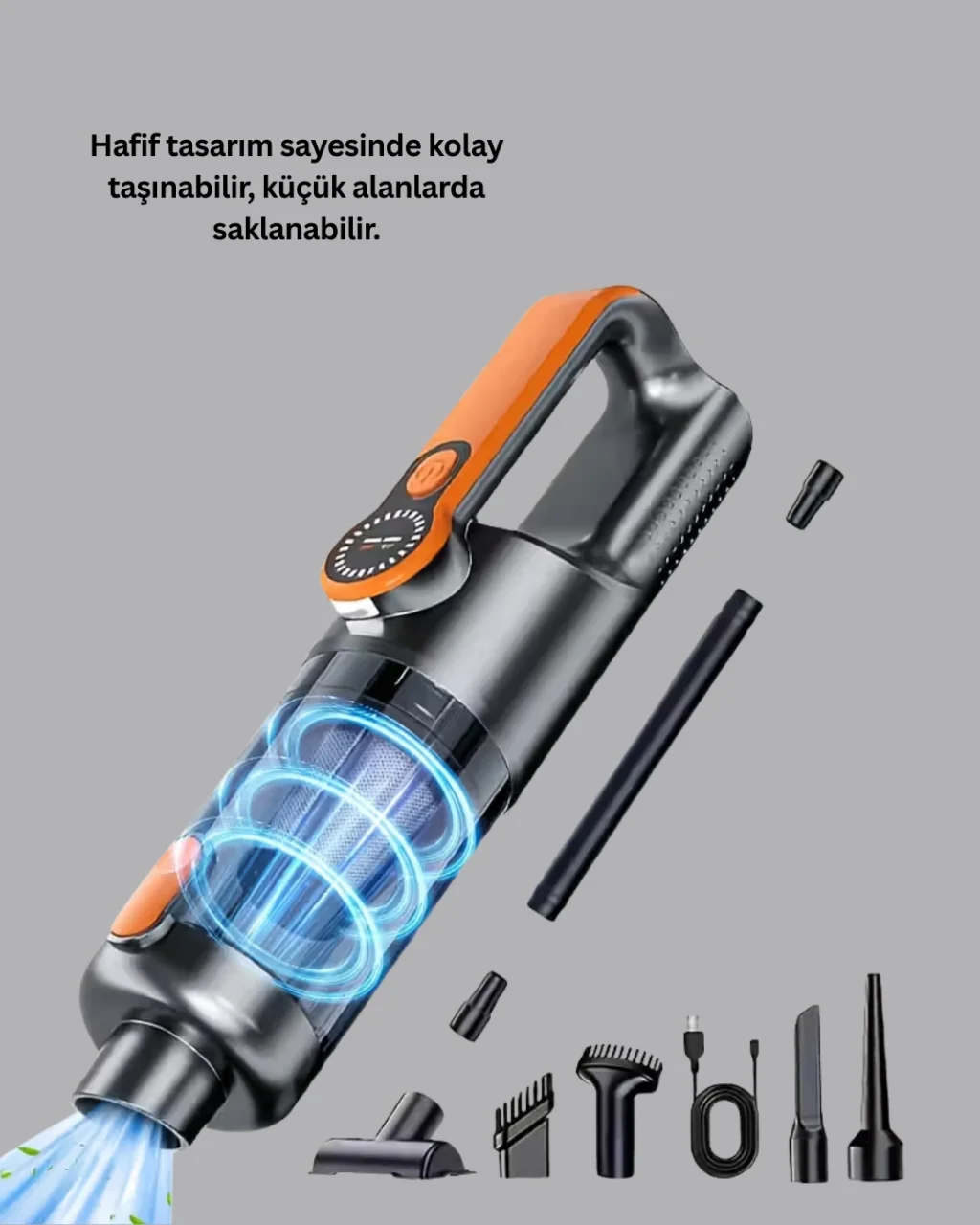 Güçlü motor yapısına sahip bu mini el süpürgesi, kuru ve sıvı kirleri saniyeler içinde temizleyerek etkili temizlik performansı sunar. Toz, saç, kırıntı, evcil hayvan tüyü ve dökülen sıvılar gibi birçok kir türünde yüksek verim sağlar. Set içerisinde bulunan numaratör hediyesi.USB Type-C hızlı şarj özelliği ile kısa sürede şarj olur ve 25–30 dakika boyunca kesintisiz çalışabilir. Kablosuz yapısı sayesinde dar alanlarda ve araç içinde kullanım kolaylığı sağlar.5 başlık aparatı ile donatılmış cihaz; dar uçlu başlıkla detay temizliği, fırçalı başlıkla hassas yüzey temizliği, geniş başlıkla genel yüzey temizliği, yuvarlak başlıkla köşe temizliği ve esnek hortumla zor ulaşılan yerlerde üstün performans sunar.Yıkanabilir toz haznesi hijyenik kullanım sağlar. Kompakt boyutu sayesinde çekmece, torpido veya çantalarda kolayca saklanabilir.Ürün Markası: Lisinya