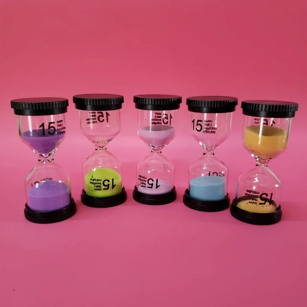 Dekoratif 15 dakikalık kum saati evinize ofisinize renk katacak.