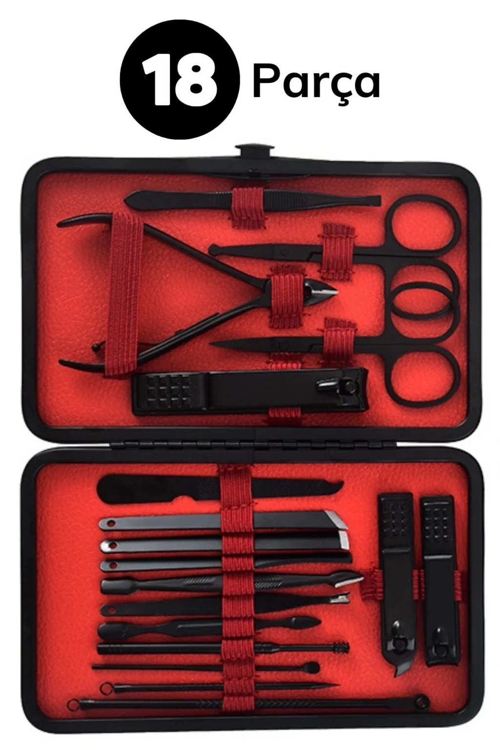 Profesyonel Tırnak Bakımı İçin Kapsamlı Set: 18 Parça Çanta Tipi Manikür Pedikür Tırnak Bakım Seti, tırnaklarınıza profesyonel bir bakım yapabilmeniz için ihtiyacınız olan her şeyi sunar. Bu set, tırnak kesimi, şekillendirme, törpüleme ve tırnak eti bakımı gibi işlemleri gerçekleştirmenizi sağlar.