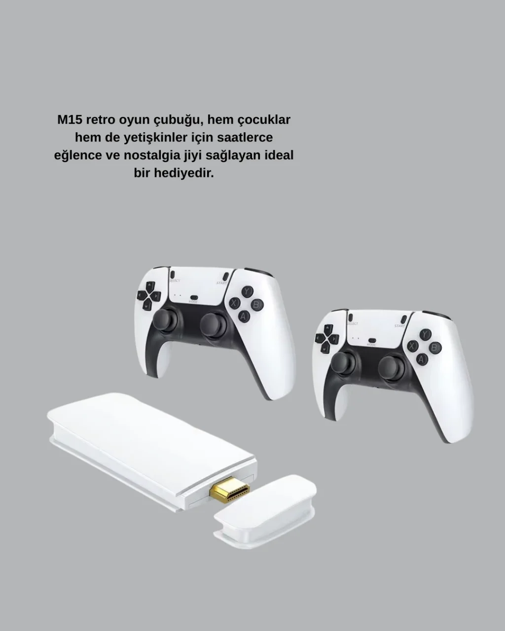 M15 oyun çubuğu, eski ve yeni oyuncular için özel olarak geliştirilmiş, 20.000 oyunlu nostalji dolu bir konsoldur. Dört çekirdekli işlemcisi ve 64GB belleği ile hızlı ve kararlı performans sunar. 20 farklı oyun platformunun en iyi başlıklarını içinde barındırır.Kurulumu son derece basittir: cihazı güç kaynağına bağlayın, HDMI kablo ile televizyona takın ve oyunlar başlasın! Kablosuz kontrolcüler sayesinde oyun sırasında rahatça hareket edebilirsiniz. Çocuklar için sade, yetişkinler için nostaljik bir deneyim sağlar.Kompakt boyutu sayesinde taşıması kolaydır. Oyun sırasında yüksek performans isteyen kullanıcılar için optimize edilmiştir. Tek yapmanız gereken fişe takmak ve eğlencenin keyfini sürmek.