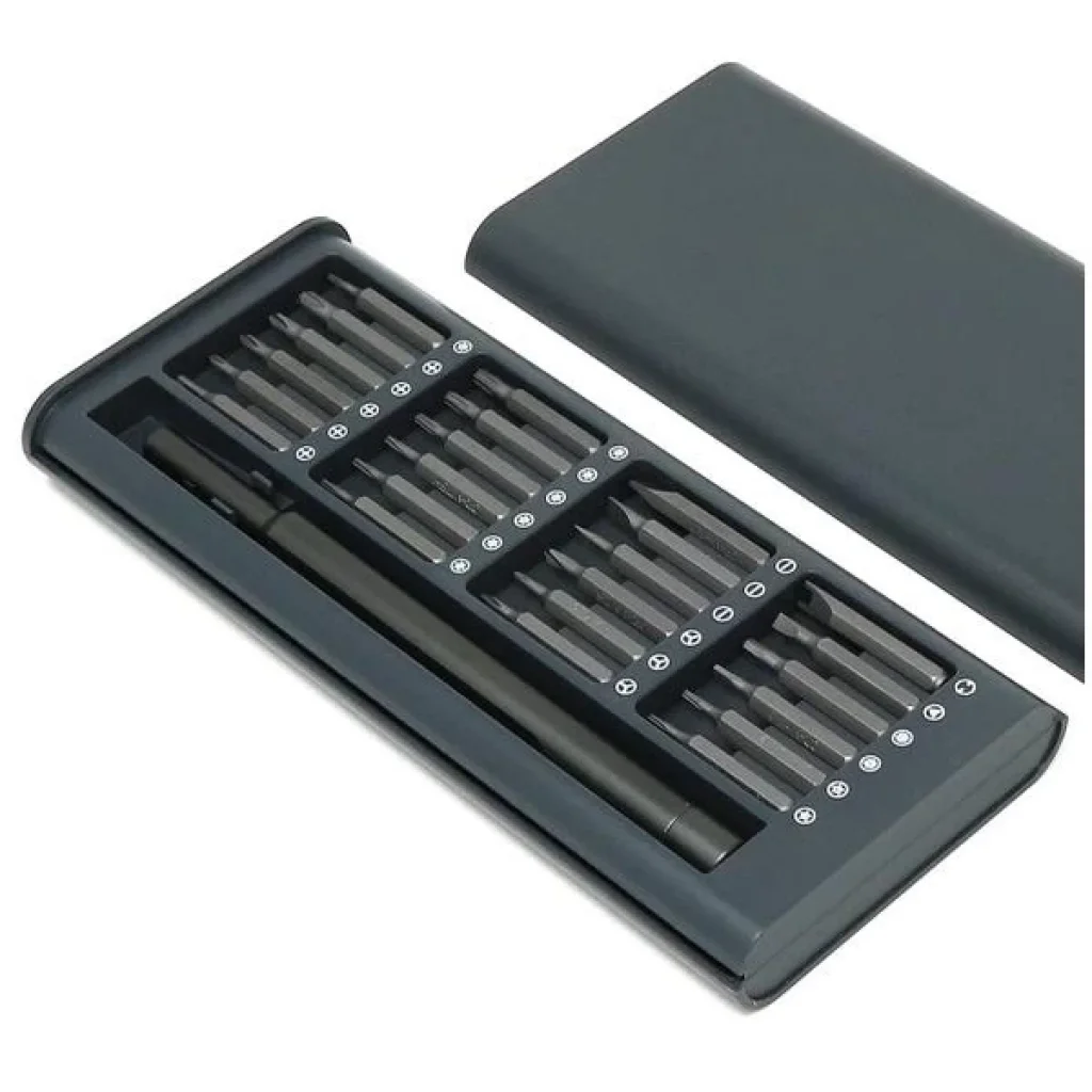 Özellikler: * Ürün adı: 25 1 tornavida seti * Sap malzemesi: alüminyum * Bit malzemesi: çelik * Kasa malzemesi: plastik.