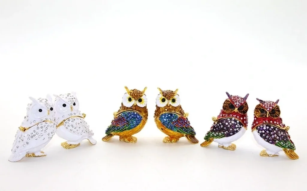 SWAROVSKİ 2'Lİ BAYKUŞ MODEL 1Ürün Özellikleri 2'li Baykuş Model 1, zarif ve detaylı işçiliği ile dekoratif bir obje olarak dikkat çeker. Parlak taşlarla süslenmiş bu baykuş figürleri, simetrik ve estetik tasarımıyla vitrinlerde, raflarda ve sehpalarda şık bir görüntü sunar. 7x5 cm boyutu ve altın detayları, ürüne sofistike bir hava katarken, koleksiyoncular ve dekorasyon tutkunları için ideal bir seçenektir.Paket İçeriği1 Adet 2'li Baykuş Figürü