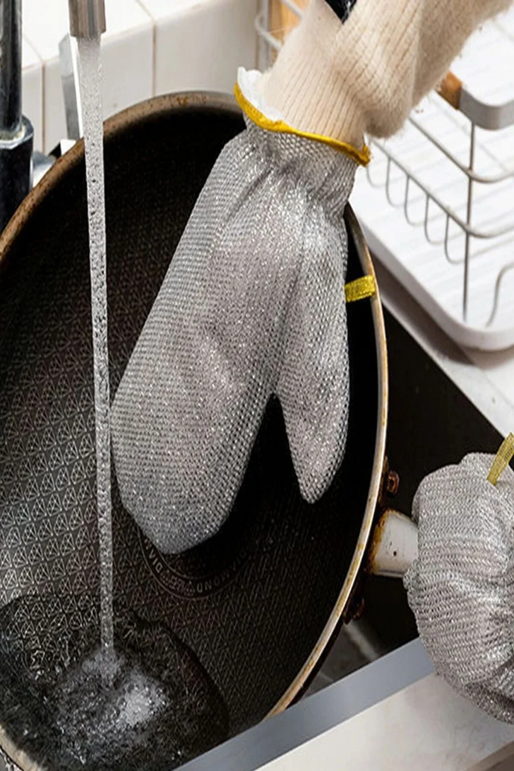 BUĞZ 2li Telli Bulaşık Eldiveni Su Geçirmez Kir Sökücü Tava Tencere Ovma Mutfak Banyo Temizlik Eldiveni
