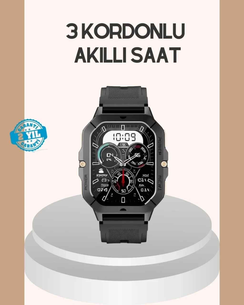 BUĞZ 3 Kordonlu Akıllı Saat Uzun Pil Süreli