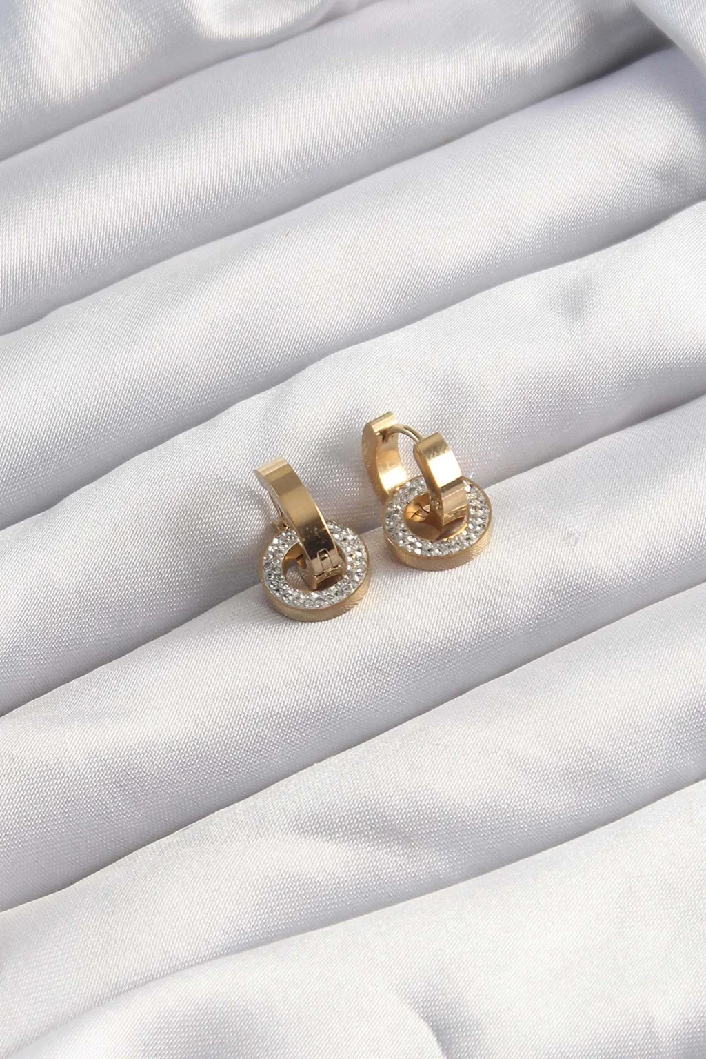 BUĞZ 316L Çelik Altın Renk Zirkon Taşlı Halka Model Küpe - Lisinya