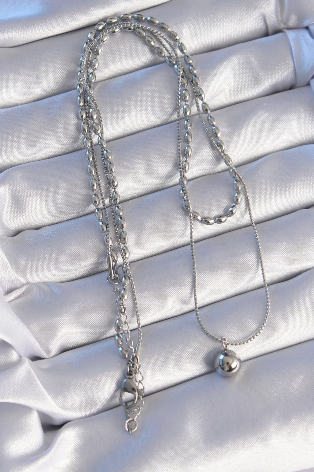 BUĞZ 316L Çelik Çift Zincirli Gümüş Renk Topçuk Model Kolye - Lisinya