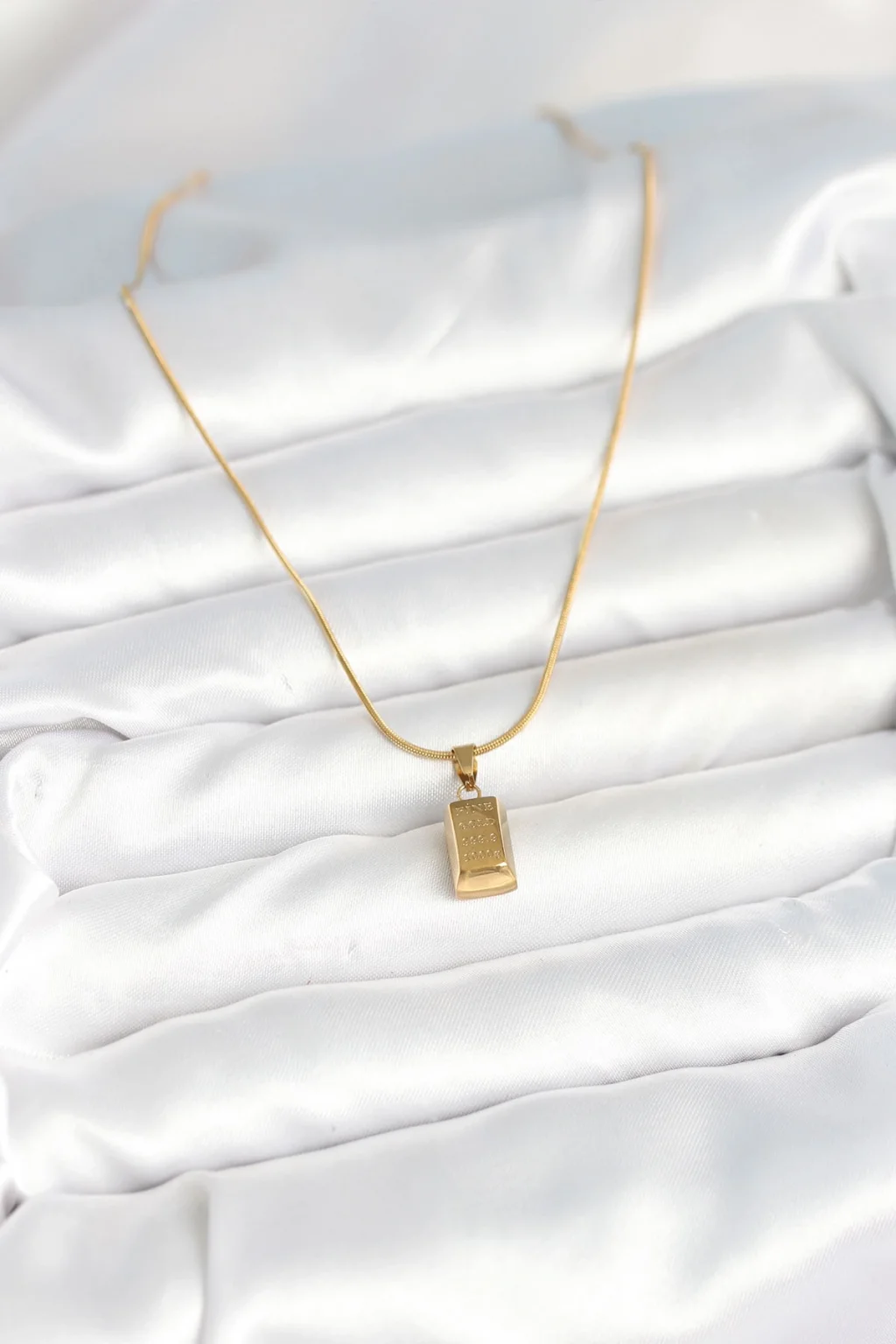 BUĞZ 316L Çelik Gold Renk Mini Külçe Altın Model Kolye - Lisinya