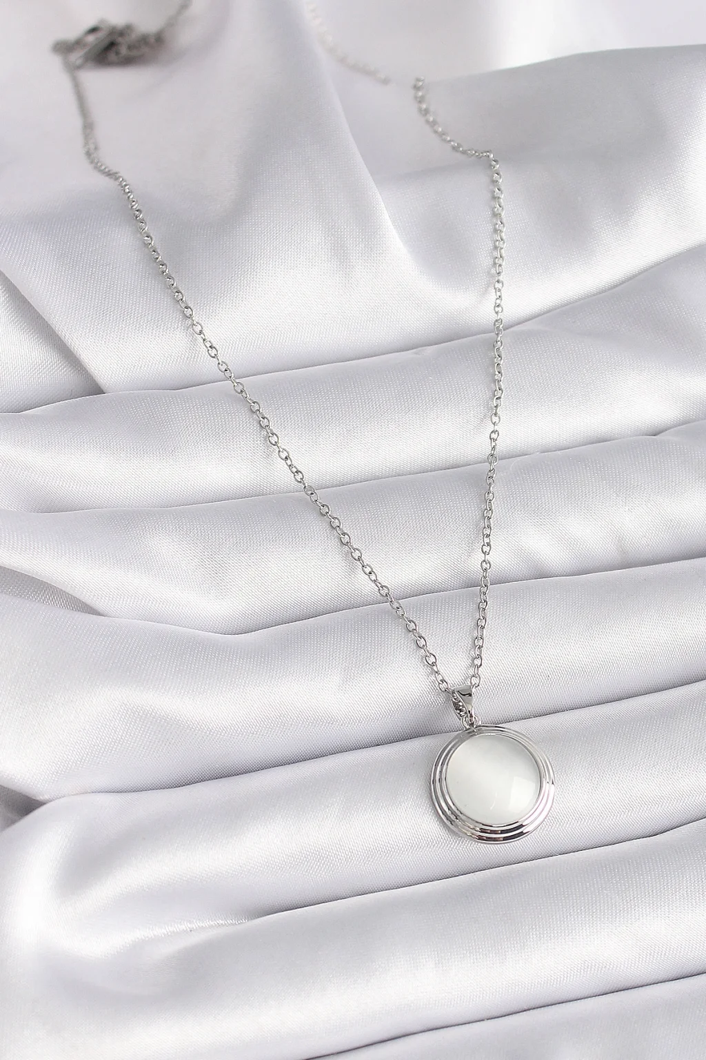 BUĞZ 316L Çelik Gümüş Renk Beyaz Sedefli Daire Model Kadın Kolye - Lisinya