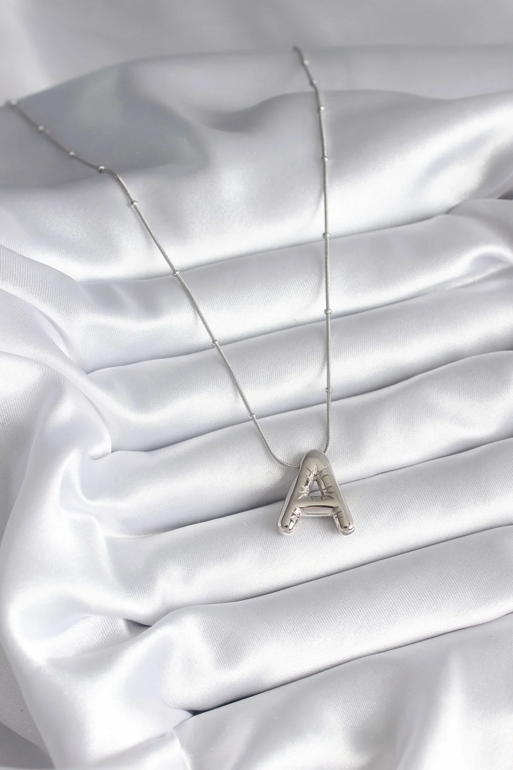 BUĞZ 316L Çelik Gümüş Renk Bubble "A" Harf Model Kadın Kolye - Lisinya