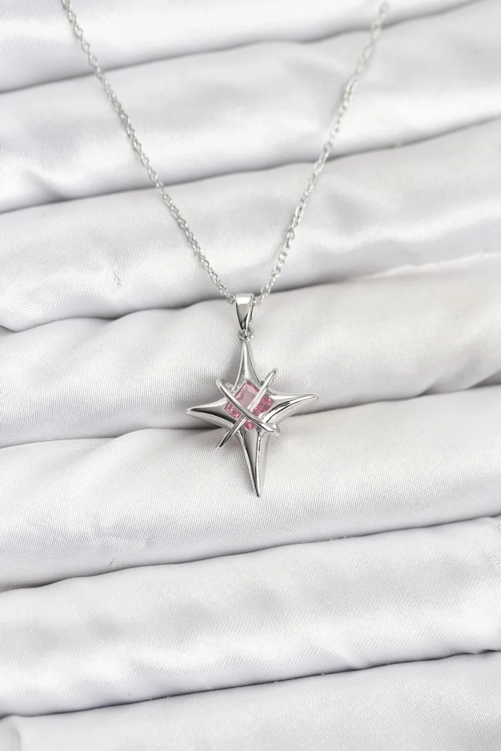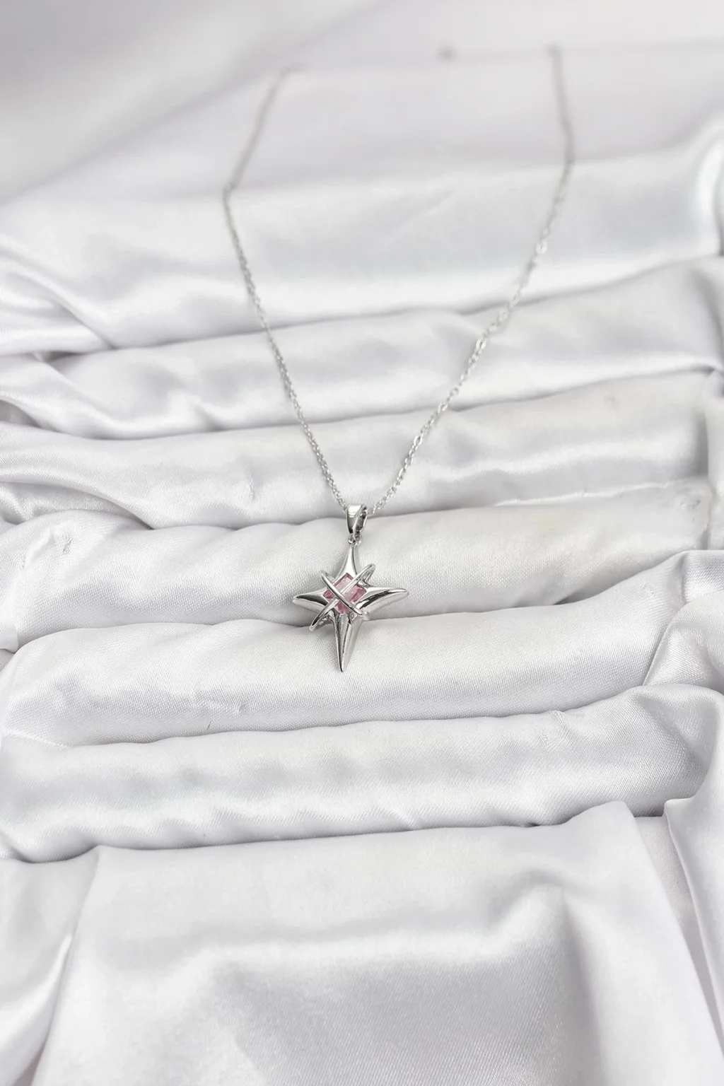 BUĞZ 316L Çelik Gümüş Renk Zirkon Taşlı Kutup Yıldızı Model Kadın Kolye