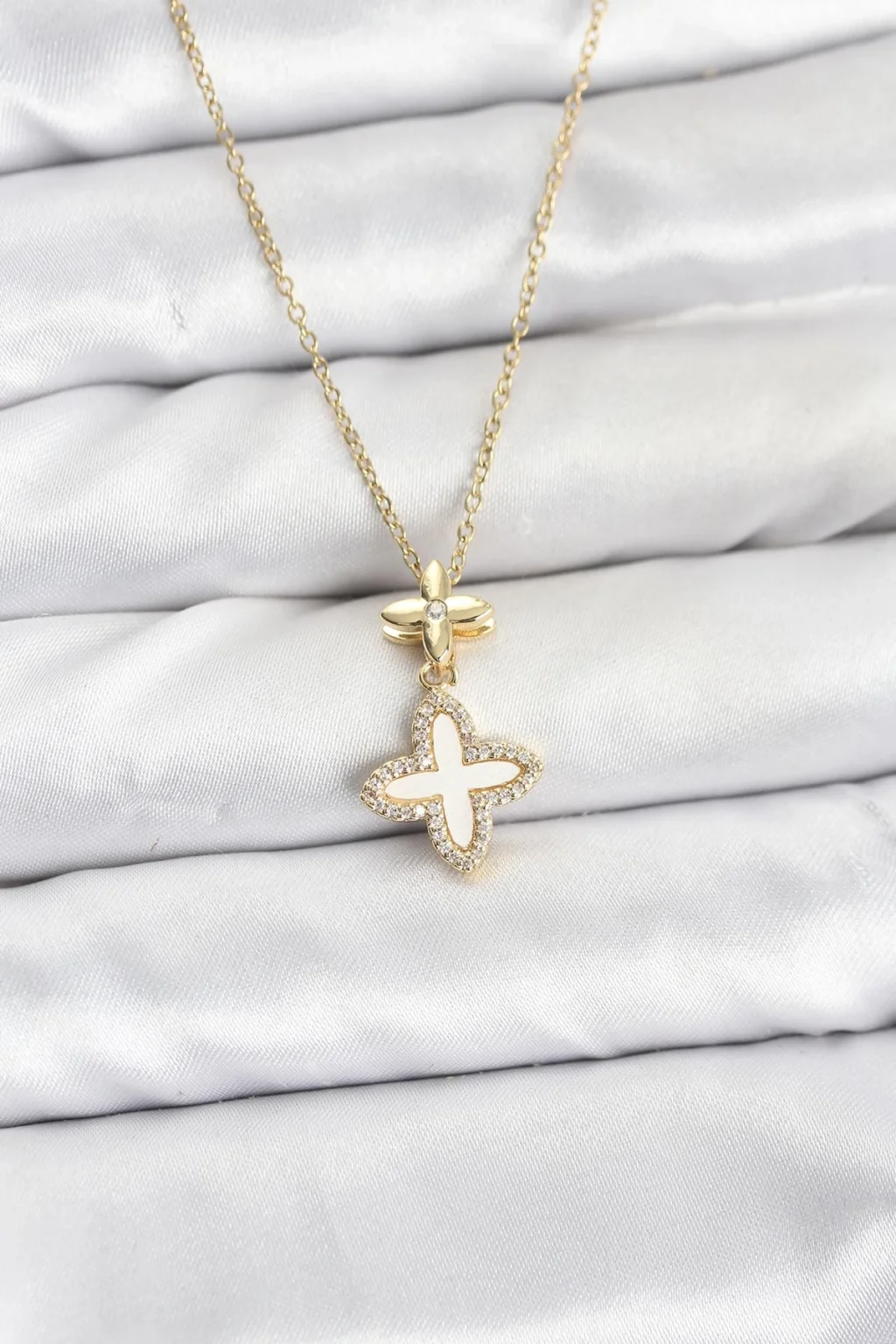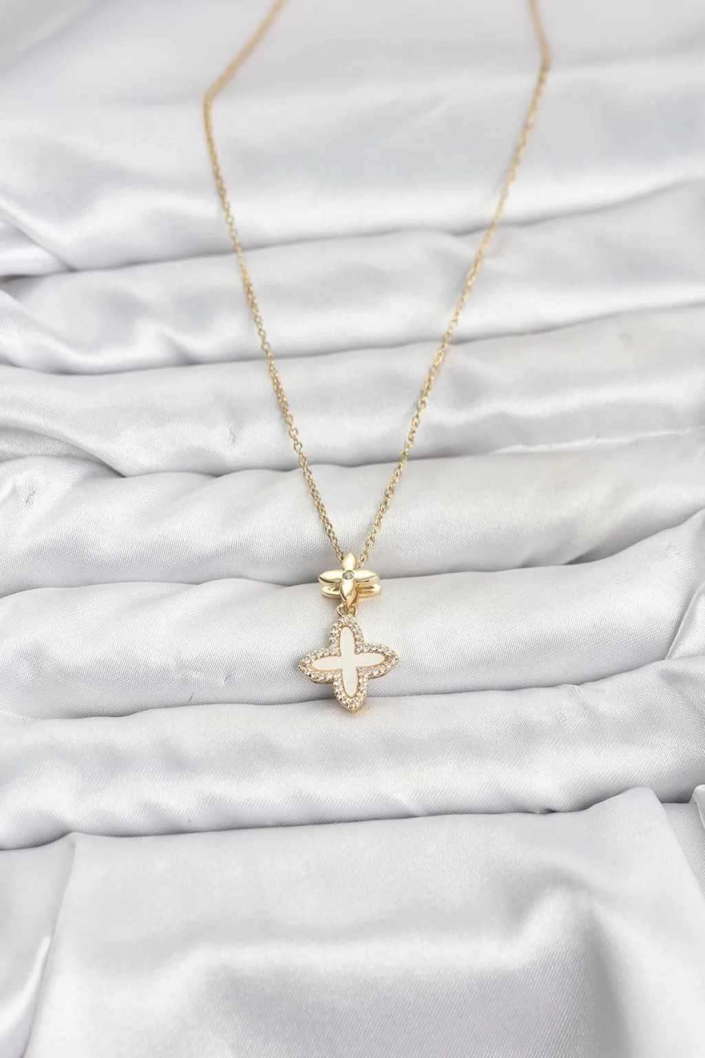 BUĞZ 316L Çelik Zincir Gold Renk 4 Yapraklı Yonca Model Zirkon Taşlı Kadın Kolye