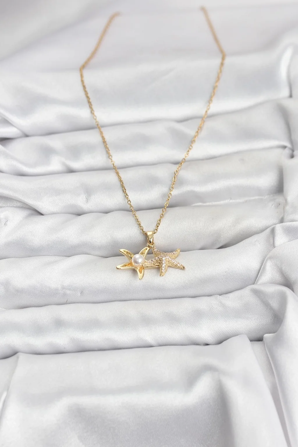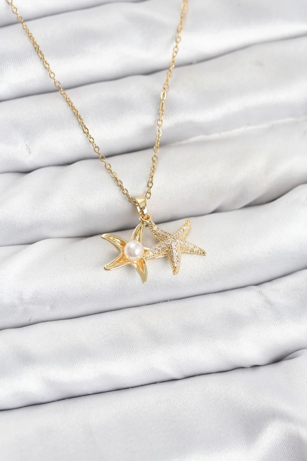 BUĞZ 316L Çelik Zincir Gold Renk Deniz Yıldızı Model Zirkon Taşlı Kadın Kolye