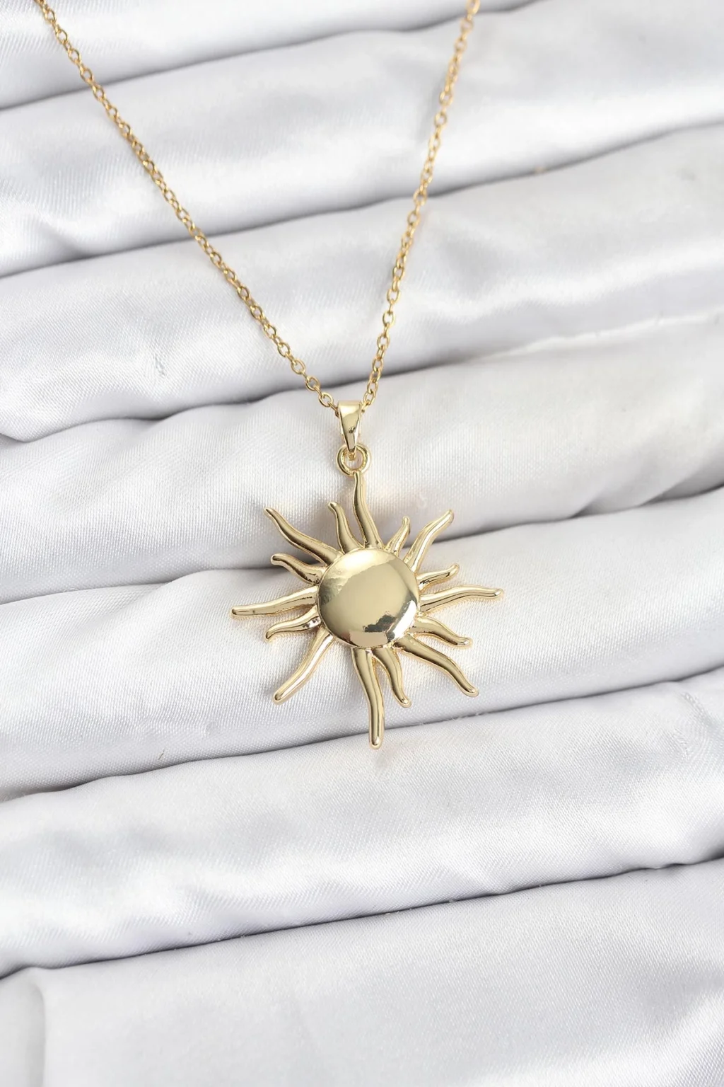 BUĞZ 316L Çelik Zincir Gold Renk Güneş Model Kadın Kolye