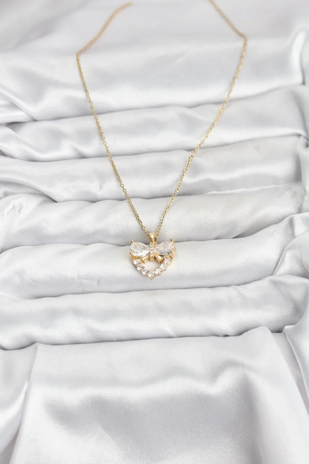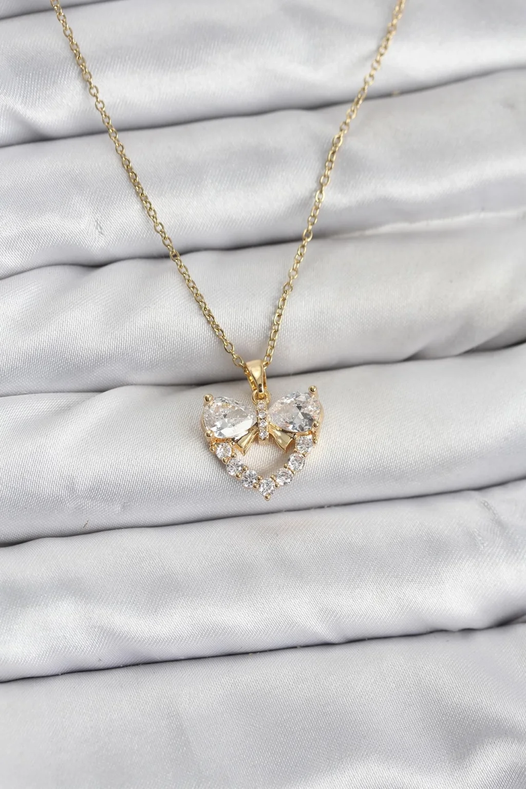 BUĞZ 316L Çelik Zincir Gold Renk Kalp ve Fiyonk Model Zirkon Taşlı Kadın Kolye