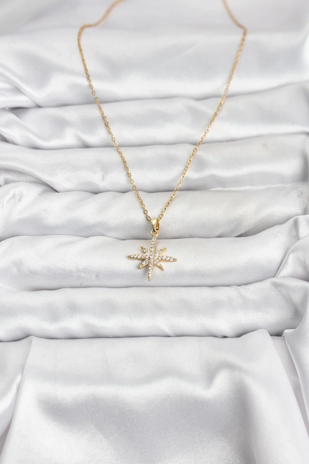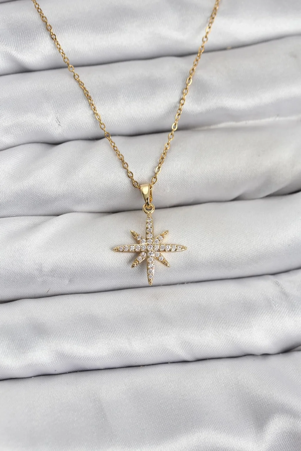 BUĞZ 316L Çelik Zincir Gold Renk Kutup Yıldızı Model Zirkon Taşlı Kadın Kolye