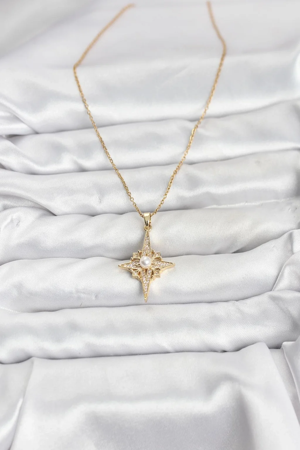 BUĞZ 316L Çelik Zincir Gold Renk Kutup Yıldızı Model Zirkon Taşlı Kadın Kolye