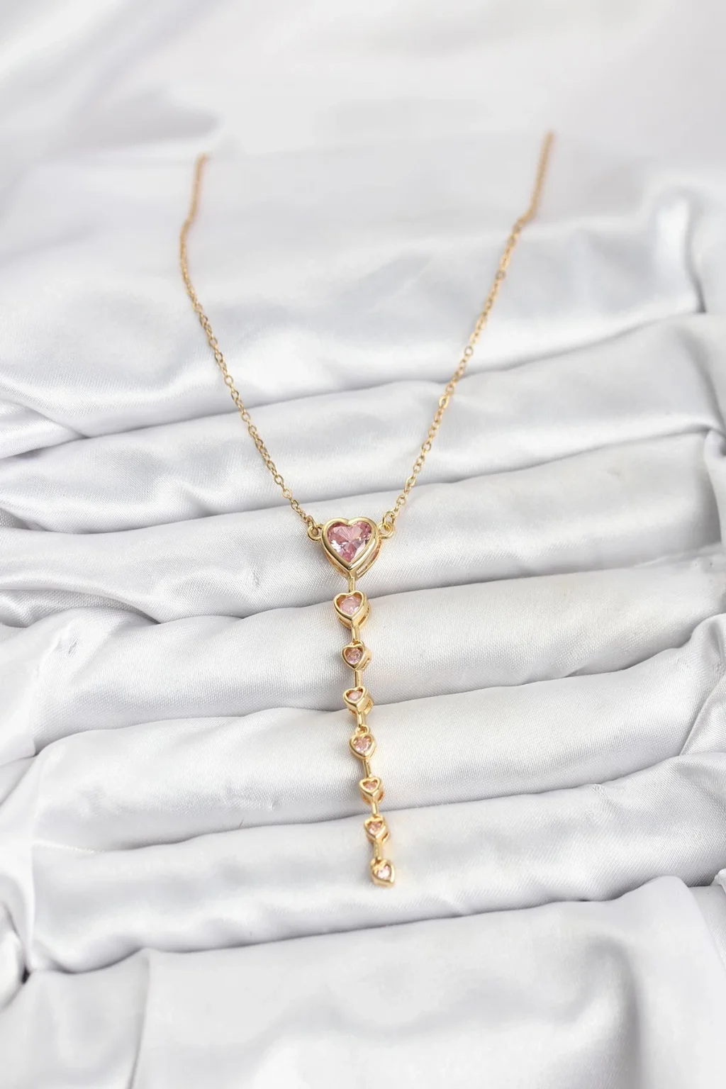 BUĞZ 316L Çelik Zincir Gold Renk Pembe Kalp Kadın Kolye