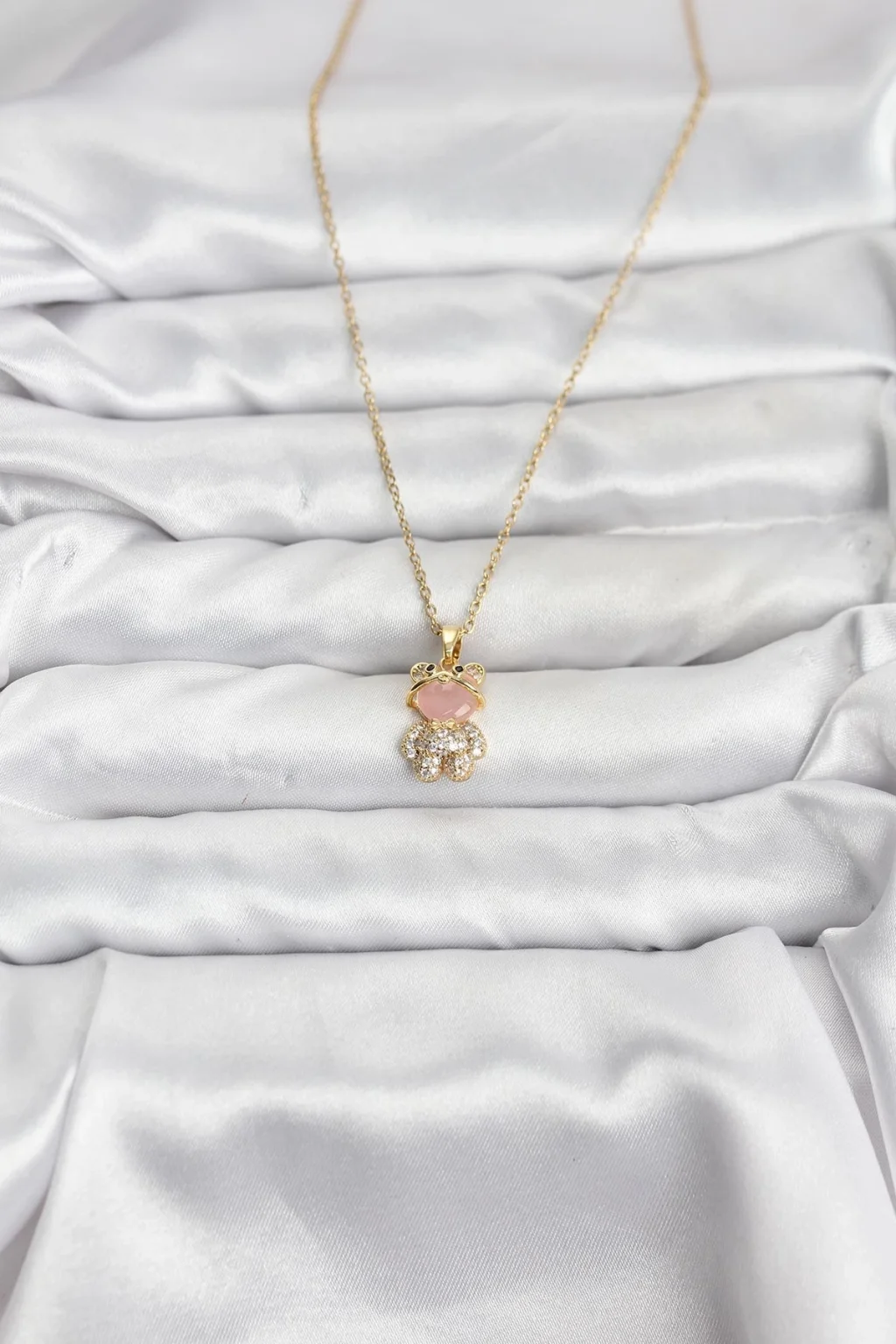 BUĞZ 316L Çelik Zincir Gold Renk Teddy Bear Model Zirkon Taşlı Kadın Kolye
