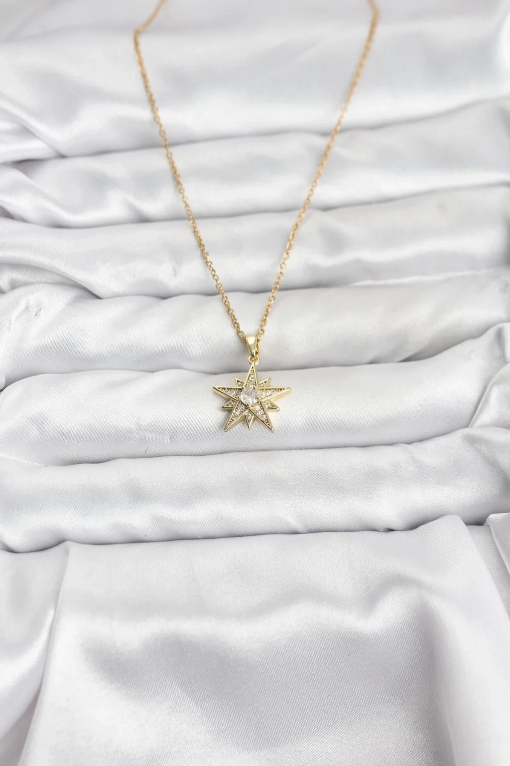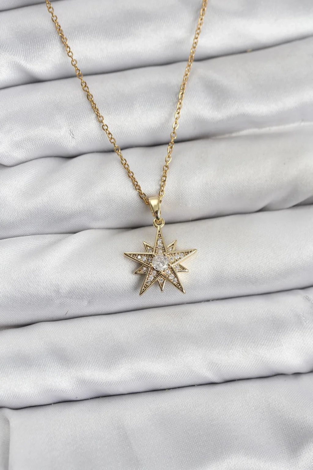BUĞZ 316L Çelik Zincir Gold Renk Yıldız Model Zirkon Taşlı Kadın Kolye