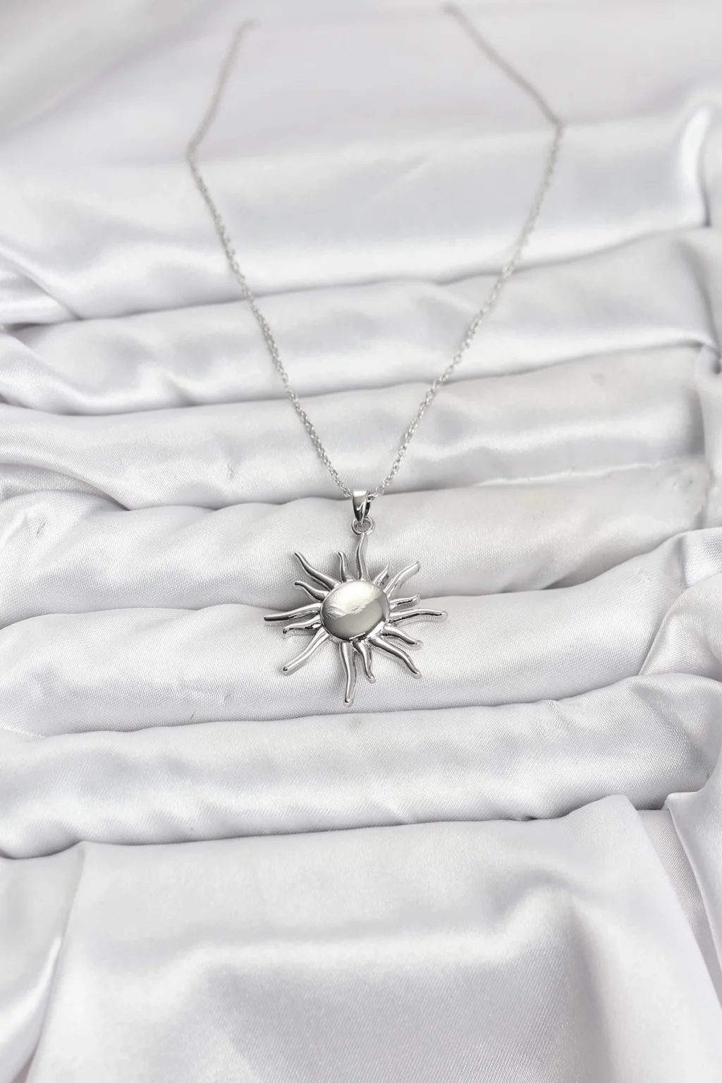 BUĞZ 316L Çelik Zincir Gümüş Renk Güneş Model Kadın Kolye - BUĞZ