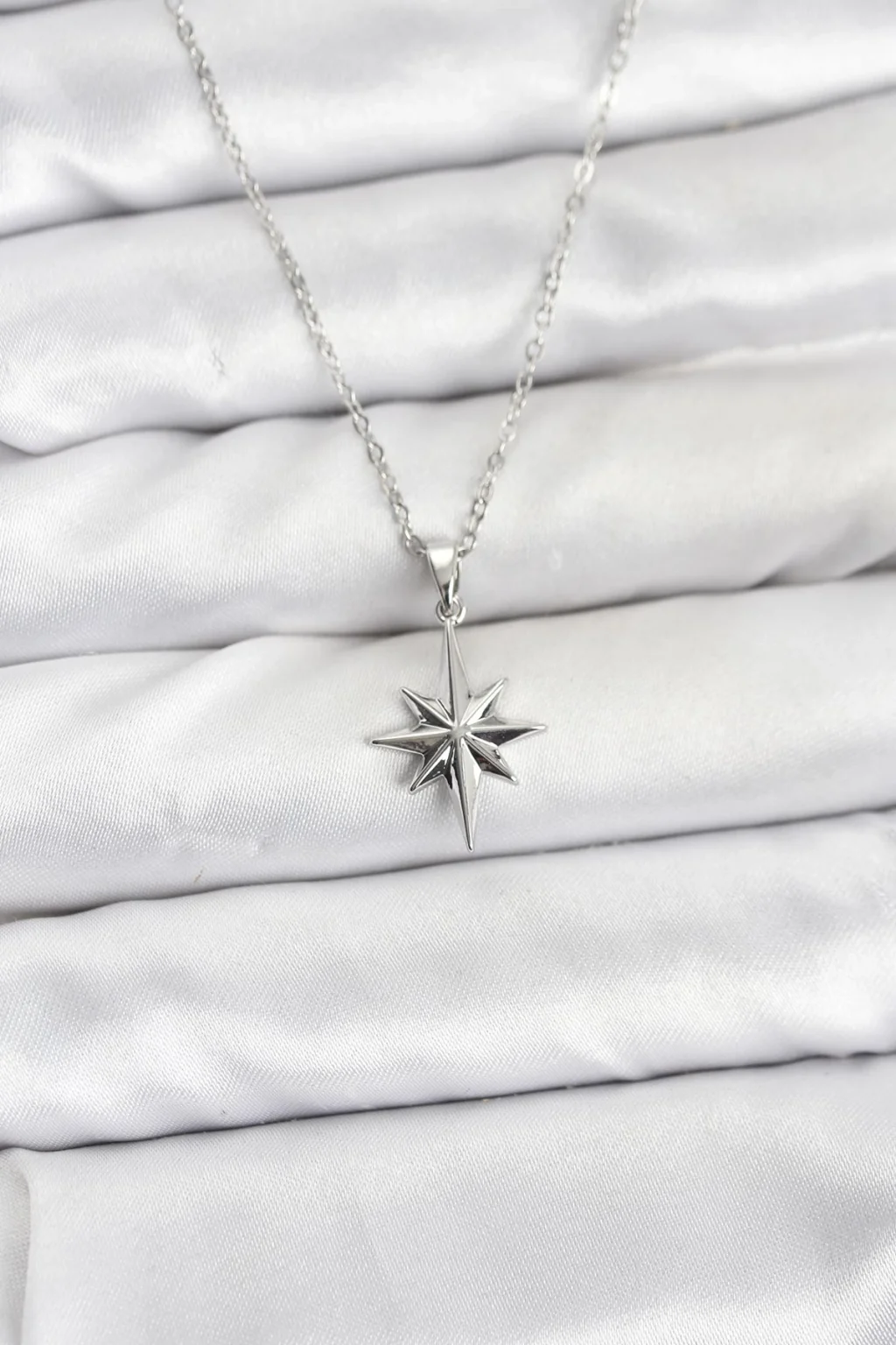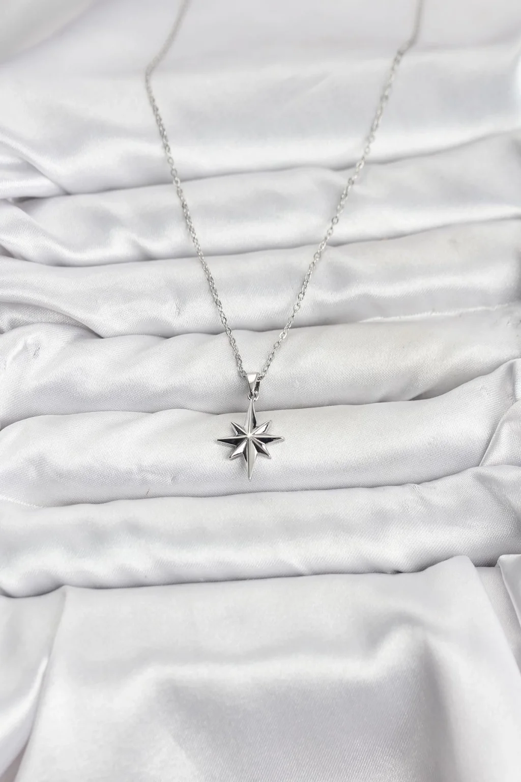 BUĞZ 316L Çelik Zincir Gümüş Renk Kutup Yıldızı Model Kadın Kolye