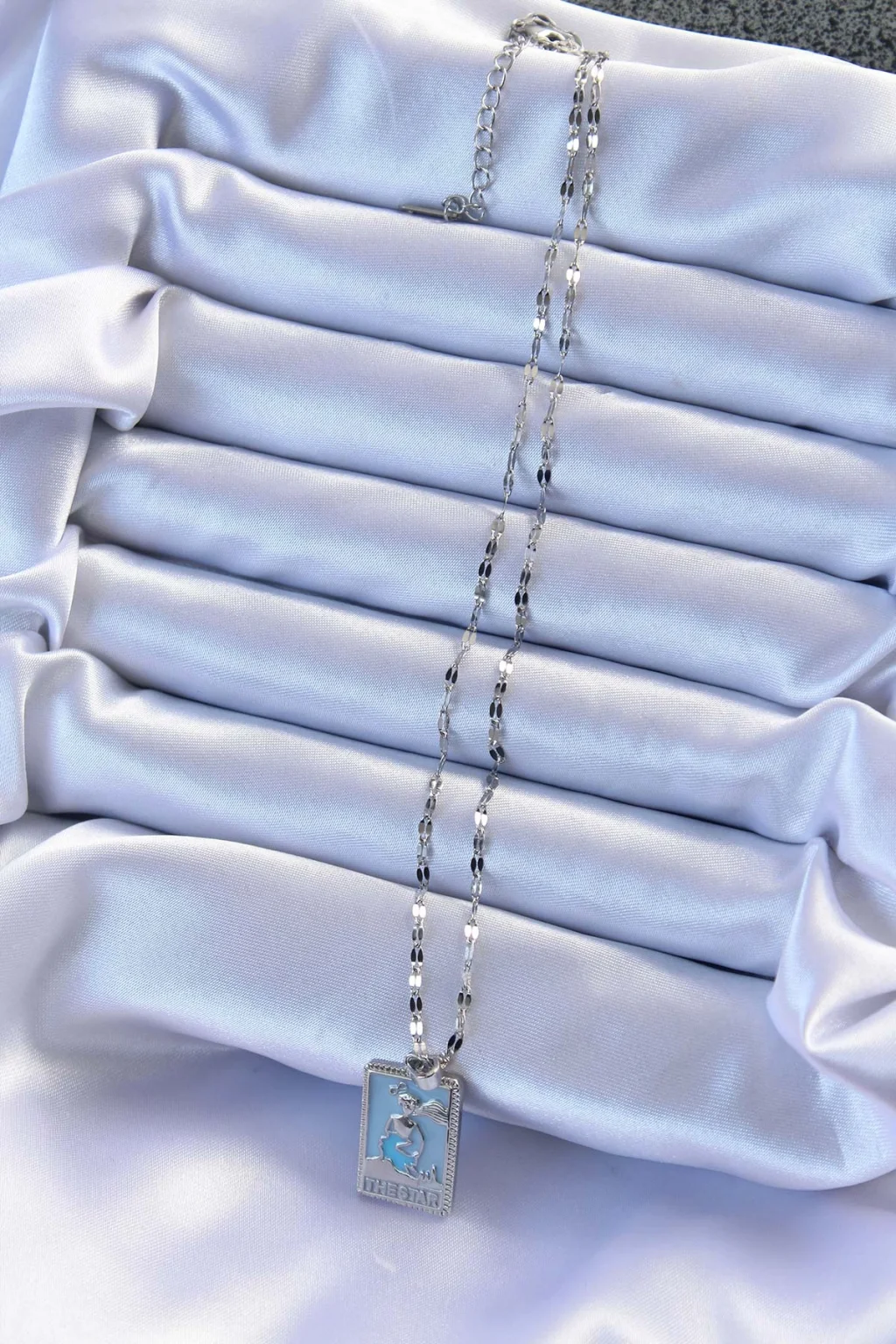 BUĞZ 316L Çelik Zincir Gümüş Renk Mavi Mineli Tarot Kolye - Lisinya