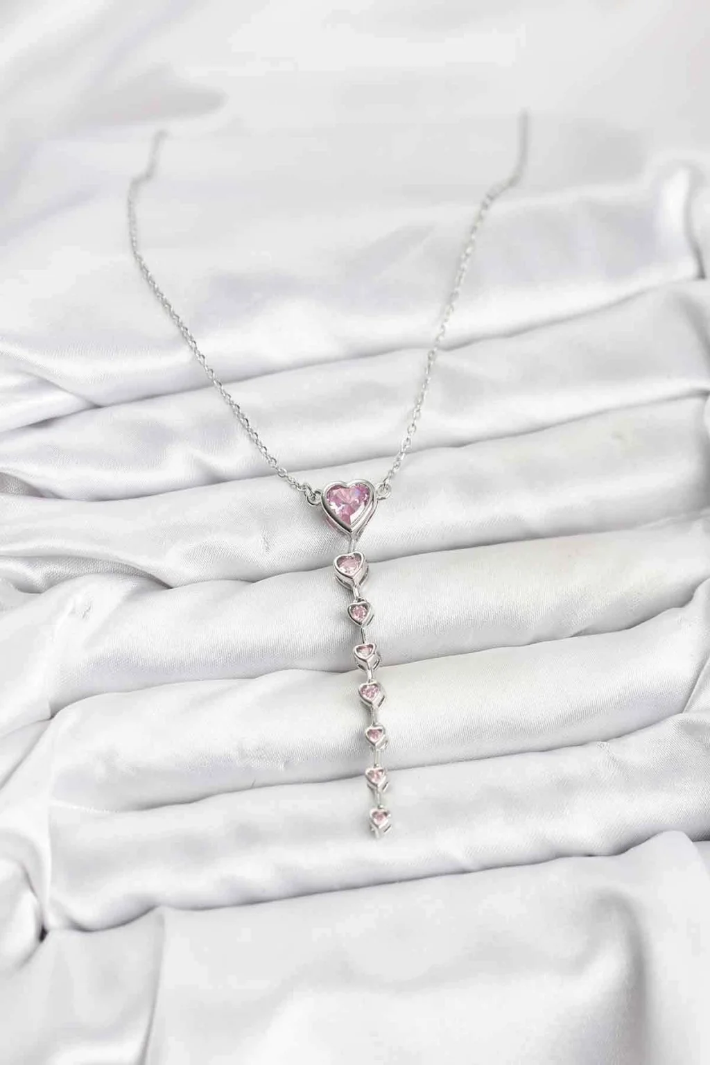 BUĞZ 316L Çelik Zincir Gümüş Renk Pembe Kalp Kadın Kolye