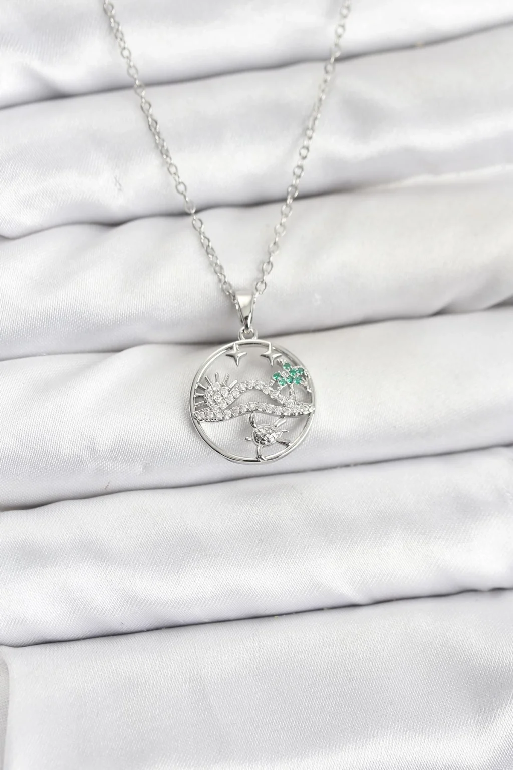 BUĞZ 316L Çelik Zincir Gümüş Renk Şans Kolyesi Model Zirkon Taşlı Kadın Kolye