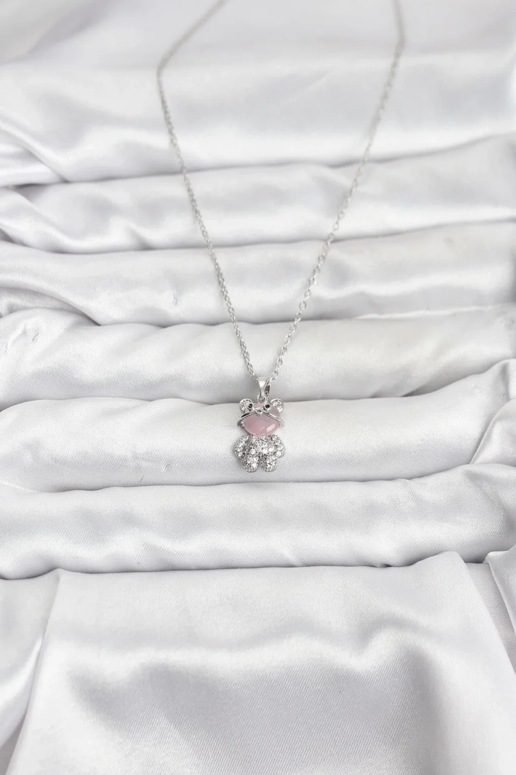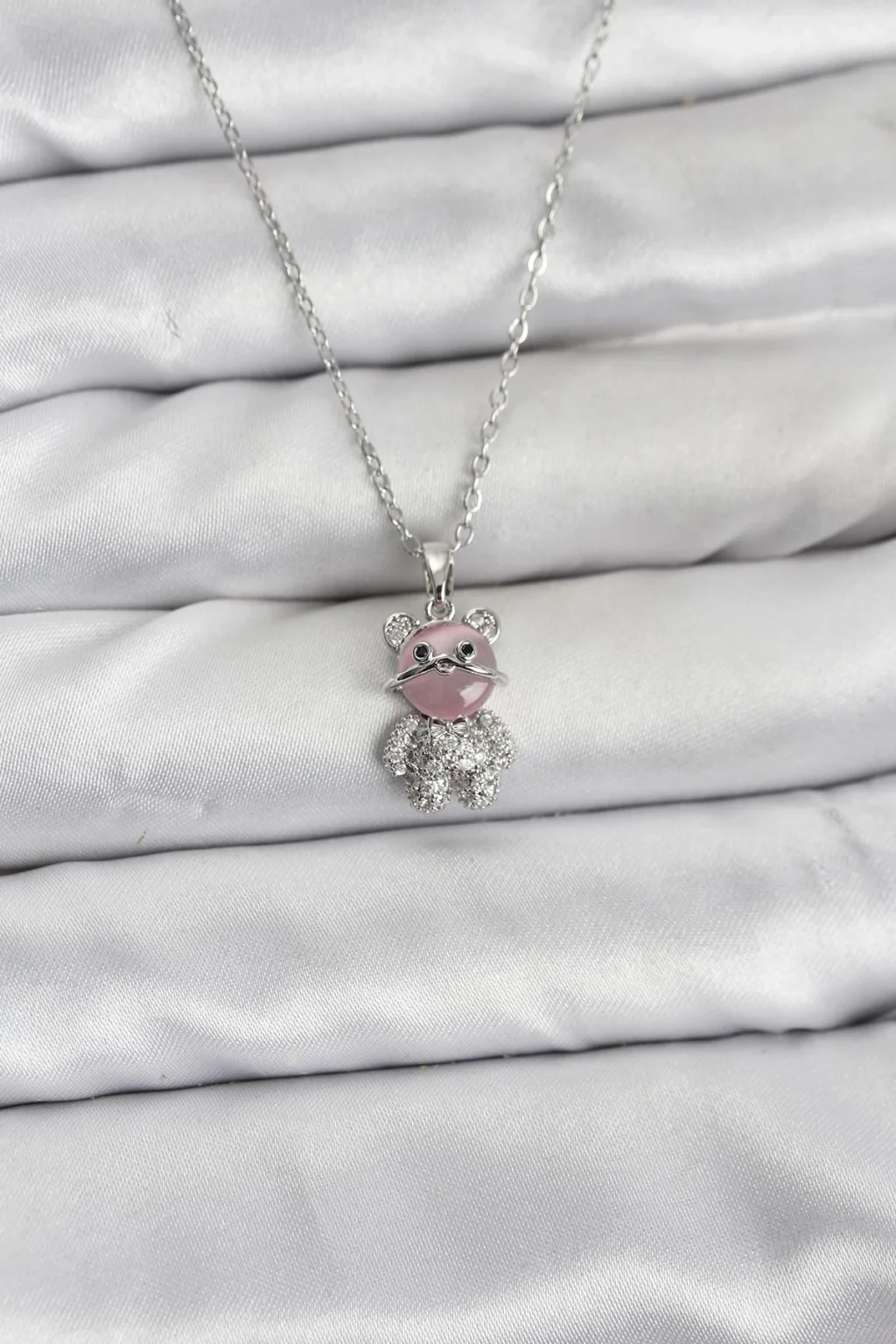 BUĞZ 316L Çelik Zincir Gümüş Renk Teddy Bear Model Zirkon Taşlı Kadın Kolye