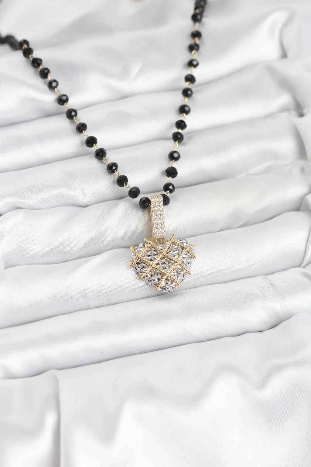 BUĞZ 316L Çelik Zincir Kristal Boncuklu Kalpli Kadın Kolye - Lisinya