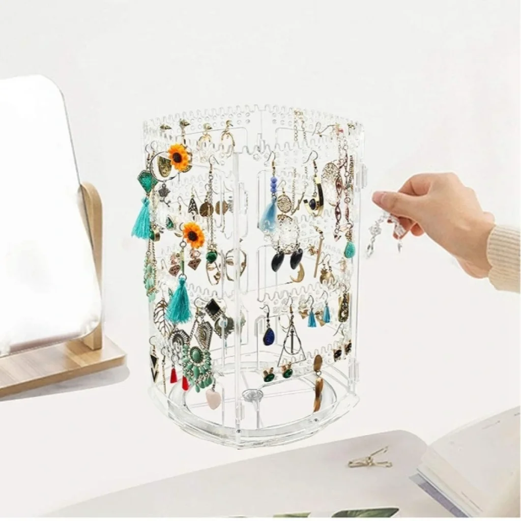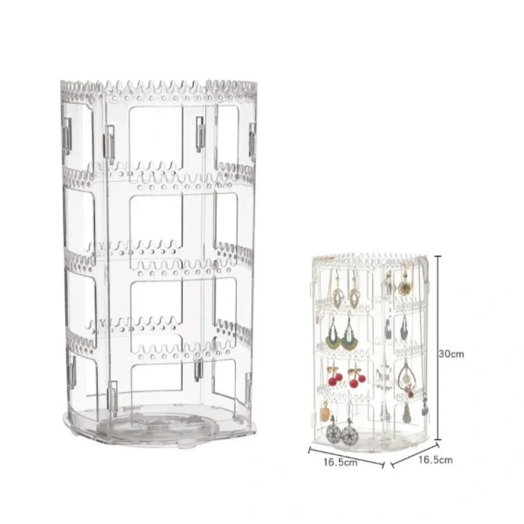 360° DÖNEBİLEN TAKI ORGANİZERİÜrün Özellikleri360° dönebilen takı organizeri, şeffaf ve dayanıklı plastikten üretilmiş olup şık ve kullanışlı bir tasarıma sahiptir. 30 cm yüksekliği ve 16,5x16,5 cm taban ölçüsüyle geniş depolama alanı sunar. Kolay dönebilen yapısı sayesinde küpe, kolye, bileklik ve yüzüklerinizi düzenli bir şekilde sergilemenize ve pratik bir şekilde ulaşmanıza olanak tanır. Takılarınızı karışmadan saklamanızı sağlayarak hem evinizde dekoratif bir görünüm yaratır hem de kullanışlı bir organizer görevi görür.Paket İçeriği1 adet 360° Dönebilen Takı Organizeri