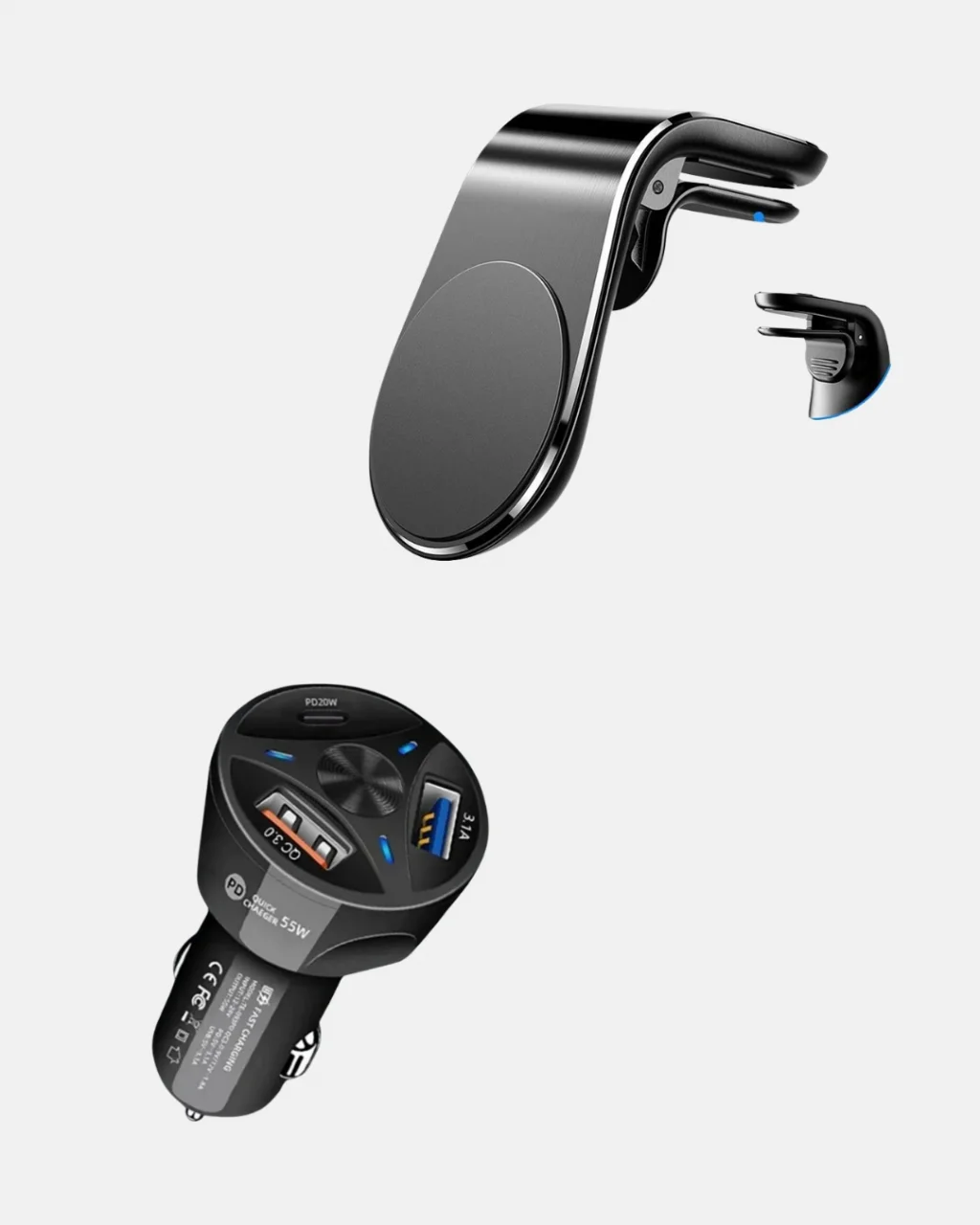 Telefonunuzu güvenle konumlandırmak ve cihazlarınızı hızlı şekilde şarj etmek isteyenler için ideal olan bu 2’li set, araç içi deneyiminizi üst seviyeye taşır. 360° ayarlanabilir manyetik telefon tutucu, sürüş esnasında görüş açınızı bozmadan telefon kullanımına olanak tanır. Navigasyon, müzik ve çağrılar için pratik bir çözüm sunar.55W gücündeki araç şarj adaptörü, birden fazla cihazı aynı anda şarj edebilme özelliği ile zamandan tasarruf sağlar. Akıllı koruma sistemi sayesinde aşırı akım ve voltaj risklerine karşı güvenlidir. Estetik, fonksiyonel ve dayanıklı yapısıyla bu set, araç içinde ihtiyaç duyulan temel aksesuarları tek pakette sunar.Ürün Markası: BUĞZ