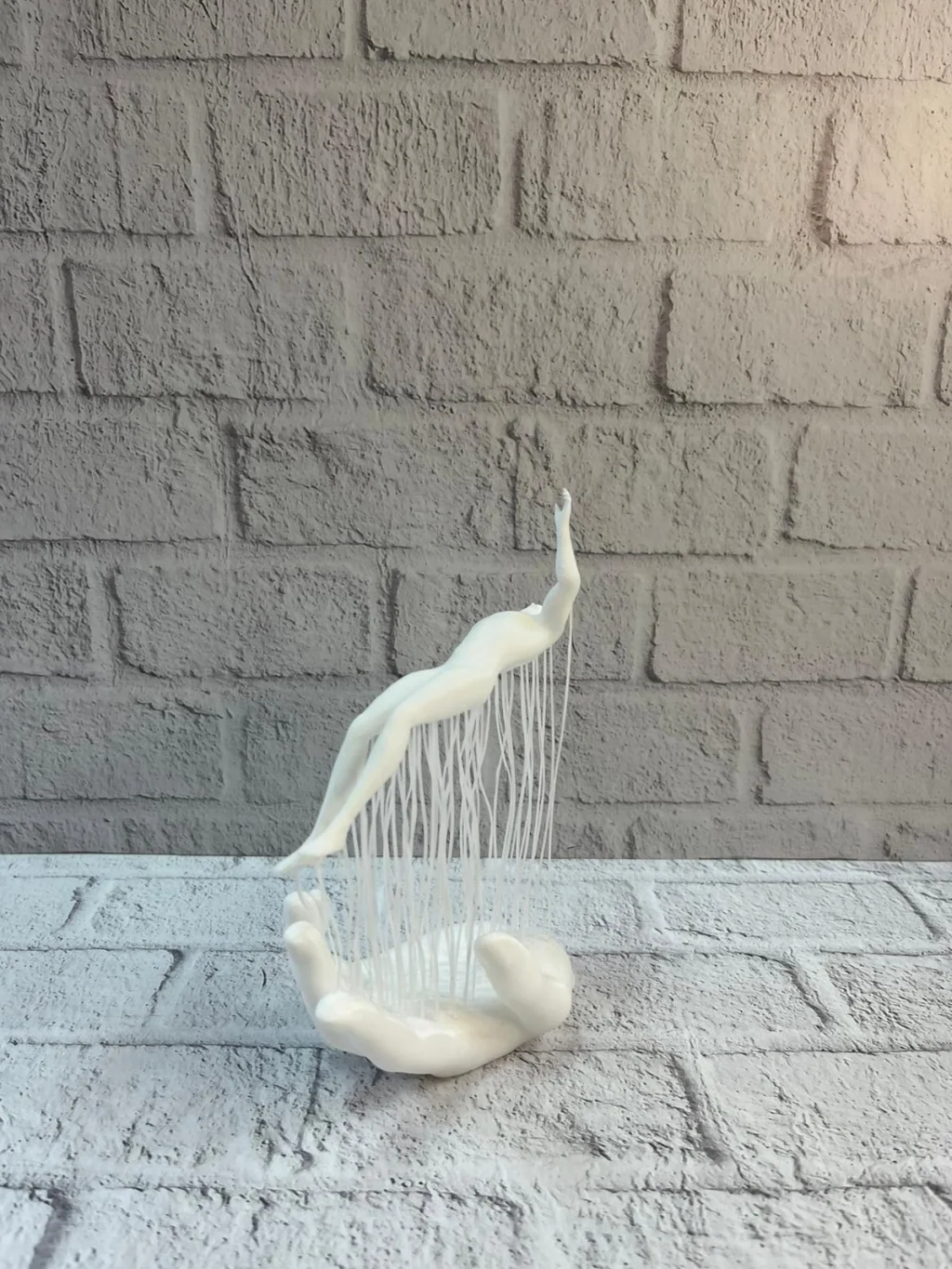 Sanat ve sadeliği bir araya getiren 3D El İnsan Figürü Beyaz, modern yaşam alanları için özel olarak tasarlanmış dekoratif bir objedir. El formu üzerinde konumlanan insan figürü; denge, özgürlük ve estetik uyumu simgeleyen soyut bir kompozisyon sunar. Minimal detayları sayesinde göz yormadan dikkat çeker.Beyaz rengi, ortama ferah ve aydınlık bir hava katarak dekorasyonun bütünlüğünü tamamlar. Salon, ofis, çalışma odası ve kitaplık gibi alanlarda raf, sehpa, masa veya konsol üzerinde tek başına güçlü bir dekoratif etki yaratır. Modern, minimal, İskandinav ve loft dekorasyon tarzlarıyla uyum sağlar.12×18 cm ölçüsü sayesinde az yer kaplar ancak bulunduğu ortamda sanatsal bir odak noktası oluşturur. Ev dekorasyonunda özgün ve anlamlı detaylara yer vermek isteyenler için şık ve zamansız bir seçenektir.