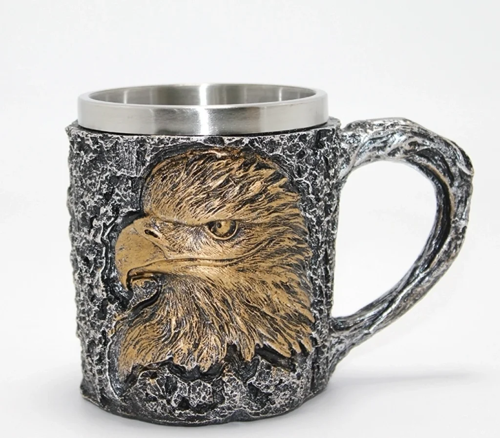 3D Kabartmalı Kartal Büstü Paslanmaz Çelik Kupa Bardak Alk4474 Ürün Ölçüleri 8.5*11 Cm