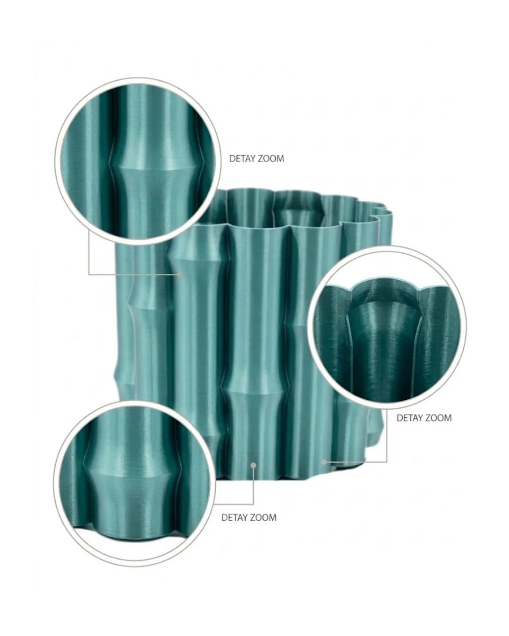 MEstetik tasarımı ve parlak yeşil rengi ile dikkat çeken bu dekoratif vazo, modern dekorasyon anlayışını benimseyenler için özel olarak tasarlanmıştır. Minimal ve şık yapısı sayesinde bulunduğu ortama sofistike bir hava katar. Parlak yüzeyi, ışığı yansıtarak ürünü daha dikkat çekici hale getirir ve bulunduğu alanda güçlü bir görsel etki oluşturur.Ürünün yüzeyinde yer alan özel form detayları, klasik vazolardan farklı olarak daha modern ve özgün bir görünüm sunar. Dalgalı yapı, ışıkla birlikte hareket hissi yaratarak ürüne derinlik kazandırır. Parlak yeşil renk tonu ise doğayı çağrıştıran ferah bir atmosfer oluşturur.Kullanım alanı oldukça geniştir. Salon, yatak odası, ofis, çalışma masası veya giriş alanlarında rahatlıkla kullanılabilir. Raf, sehpa veya masa üstü gibi farklı alanlarda konumlandırılabilir. İçine yerleştirilecek çiçeklerle daha canlı bir dekor oluşturulabilir ya da sade haliyle minimalist bir görünüm elde edilebilir.Dayanıklı ve hafif yapısı sayesinde uzun ömürlü kullanım sunar. Kolay taşınabilir olması, ürünü farklı alanlarda kullanmayı pratik hale getirir. Temizliği kolaydır ve parlak yüzeyi uzun süre ilk günkü görünümünü korur.Şık ve modern tasarımı ile öne çıkan bu dekoratif vazo, yaşam alanlarına estetik katmak isteyenler için ideal bir seçimdir. Hem dekoratif hem de işlevsel yapısı ile dikkat çeker.Ürün Markası: BUĞZ