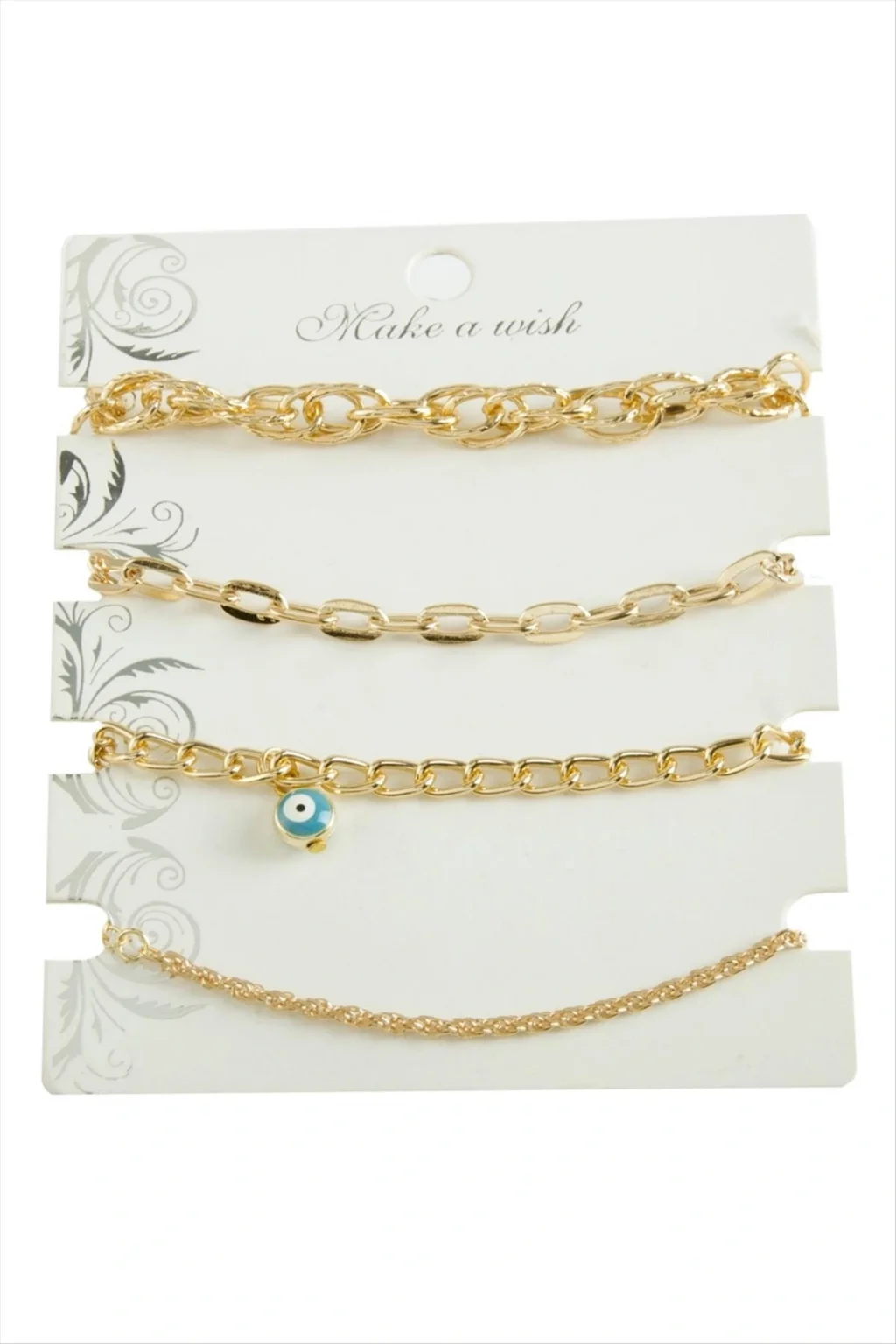 Bileklik; Ürün malzemesi metaldir. Kartlıdır. 1 kartta 4 adet zincir bileklik olarak gönderilecektir. Zincir uzunluğu 19 cmdir. Ürün figürleri asortilidir. Siparişlerinizde karışık olarak gönderilecektir.