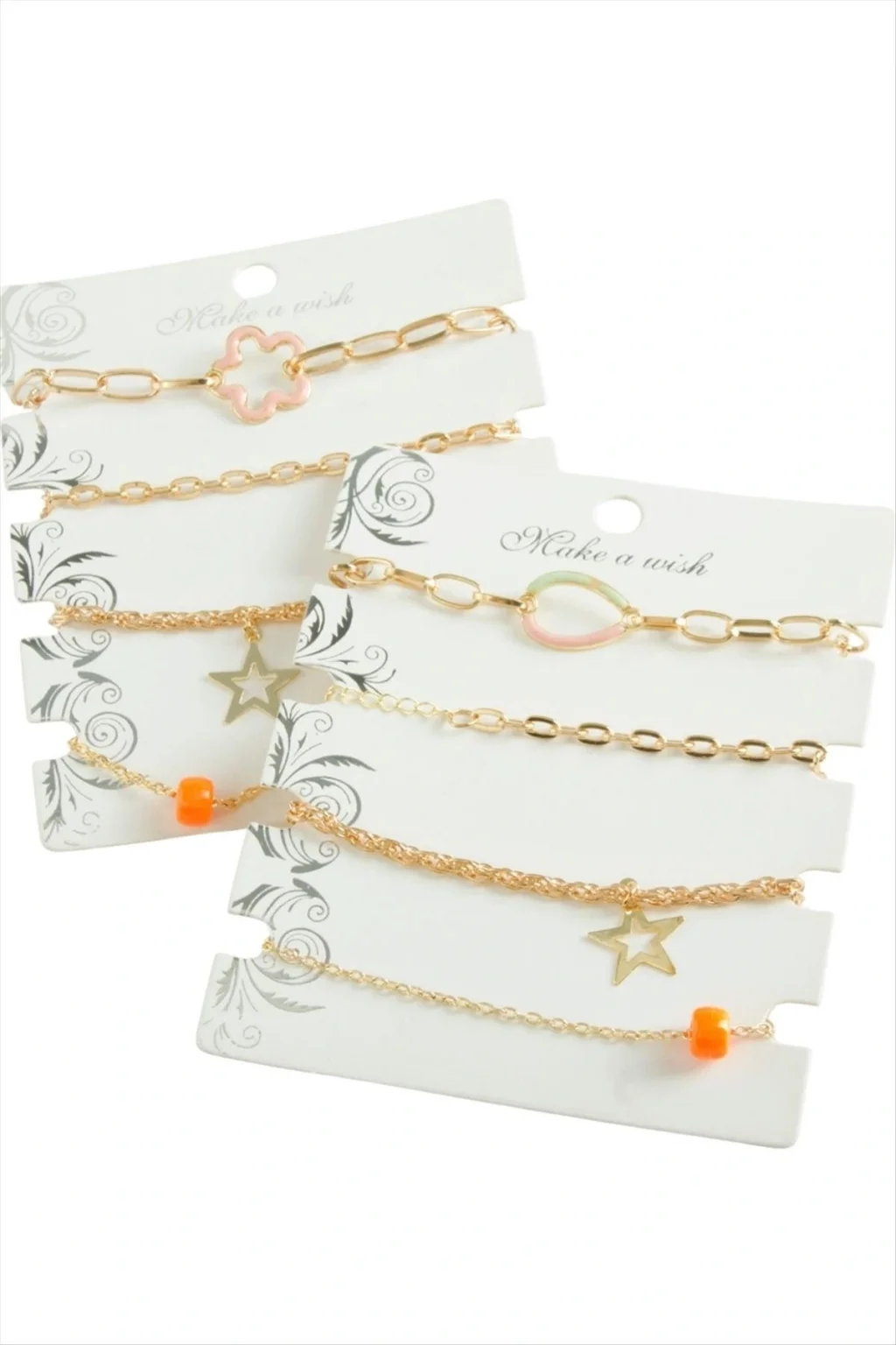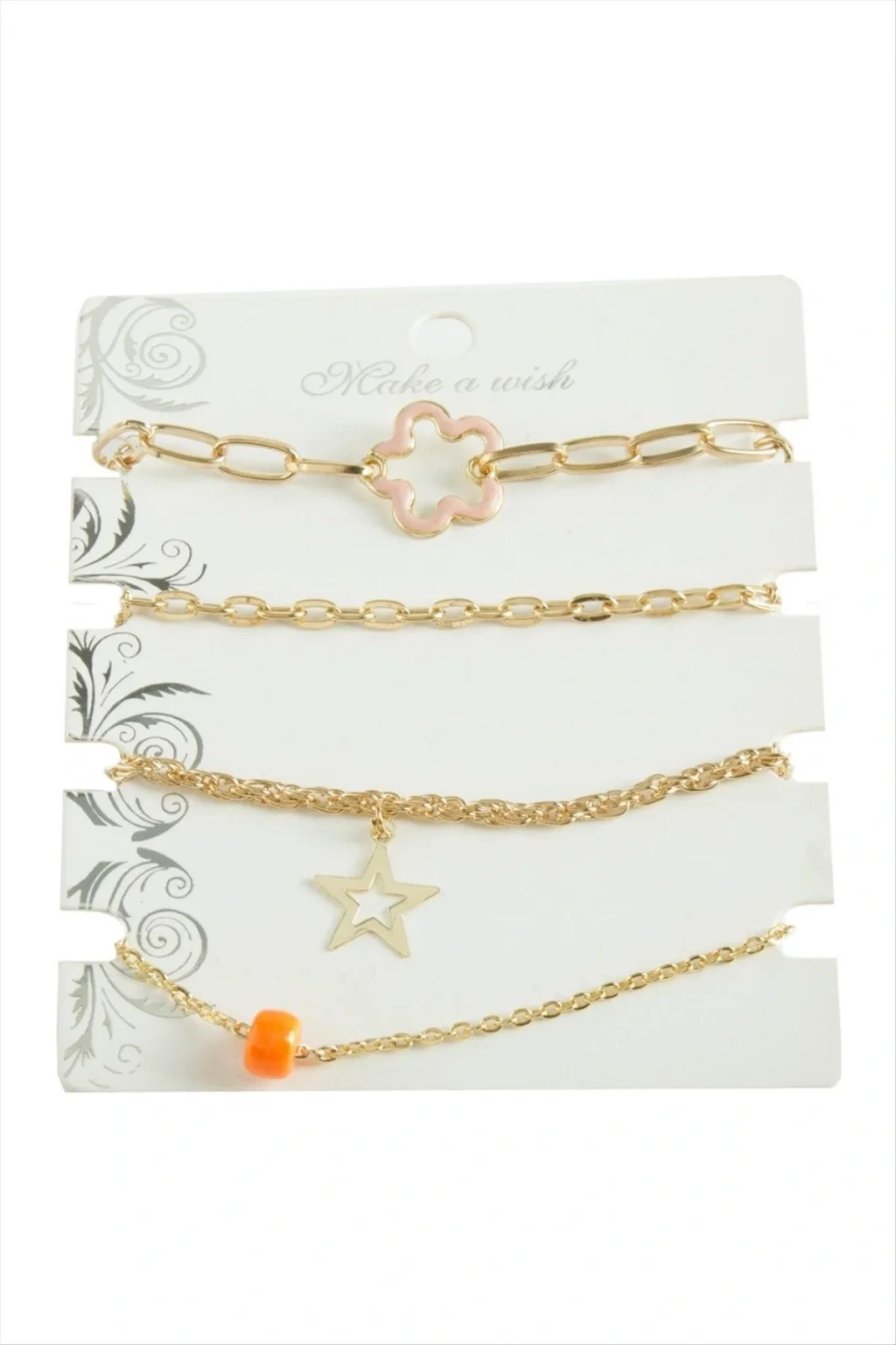 Bileklik; Ürün malzemesi metaldir. Kartlıdır. 1 kartta 4 adet zincir bileklik olarak gönderilecektir. Zincir uzunluğu 19 cmdir. Ürün renkleri karışık olarak gönderilecektir.