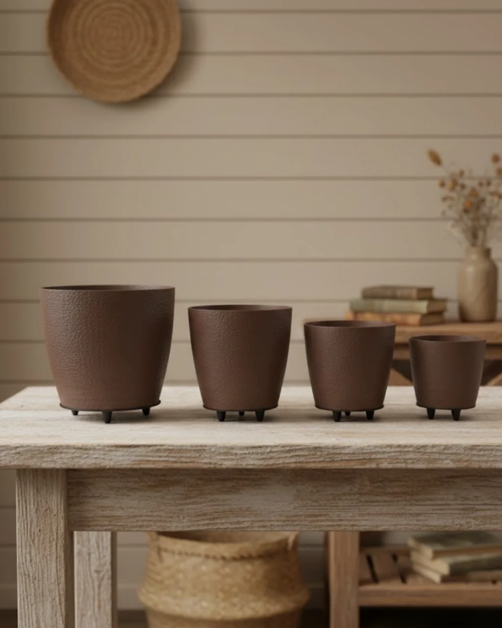 Şıklığı sadelikle buluşturan 4’lü 3D Kahverengi Vazo Seti, mekânınıza zarif bir dokunuş kazandırır. 3D yüzey detayı sayesinde ışığı farklı açılarda yansıtarak derinlik oluşturur. Ayaklı tasarımı modern bir stil sunar.