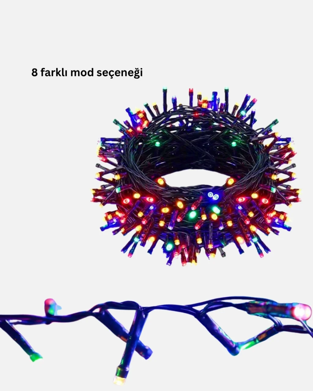 Bu 5 metrelik LED ışık zinciri, 50 adet parlak LED ampulüyle ortamınıza canlılık katar. 8 farklı ışık modu sayesinde aydınlatma tarzınızı anında değiştirebilirsiniz: sabit, yavaş geçişli, hızlı yanıp sönme, dalgalı, solma, geçişli veya kombinasyon modlarıyla dilediğiniz atmosferi oluşturun. Tüm modlar tek tuşla kontrol edilir ve sabitleme özelliğiyle seçtiğiniz ayar hafızada kalır. Siyah kablosu modern bir görünüm sağlarken dayanıklı malzemesi uzun süreli kullanım garantisi verir. 5 metrelik uzunluğu geniş alanlarda dahi homojen bir ışık dağılımı sunar. LED teknolojisi enerji tasarrufu sağlar ve geleneksel ampullere göre çok daha uzun ömürlüdür. Türk priz uyumlu fiş tasarımı güvenli kullanım sağlar. Ev, bahçe, balkon, düğün ve parti dekorasyonlarında benzersiz bir ambiyans yaratır.