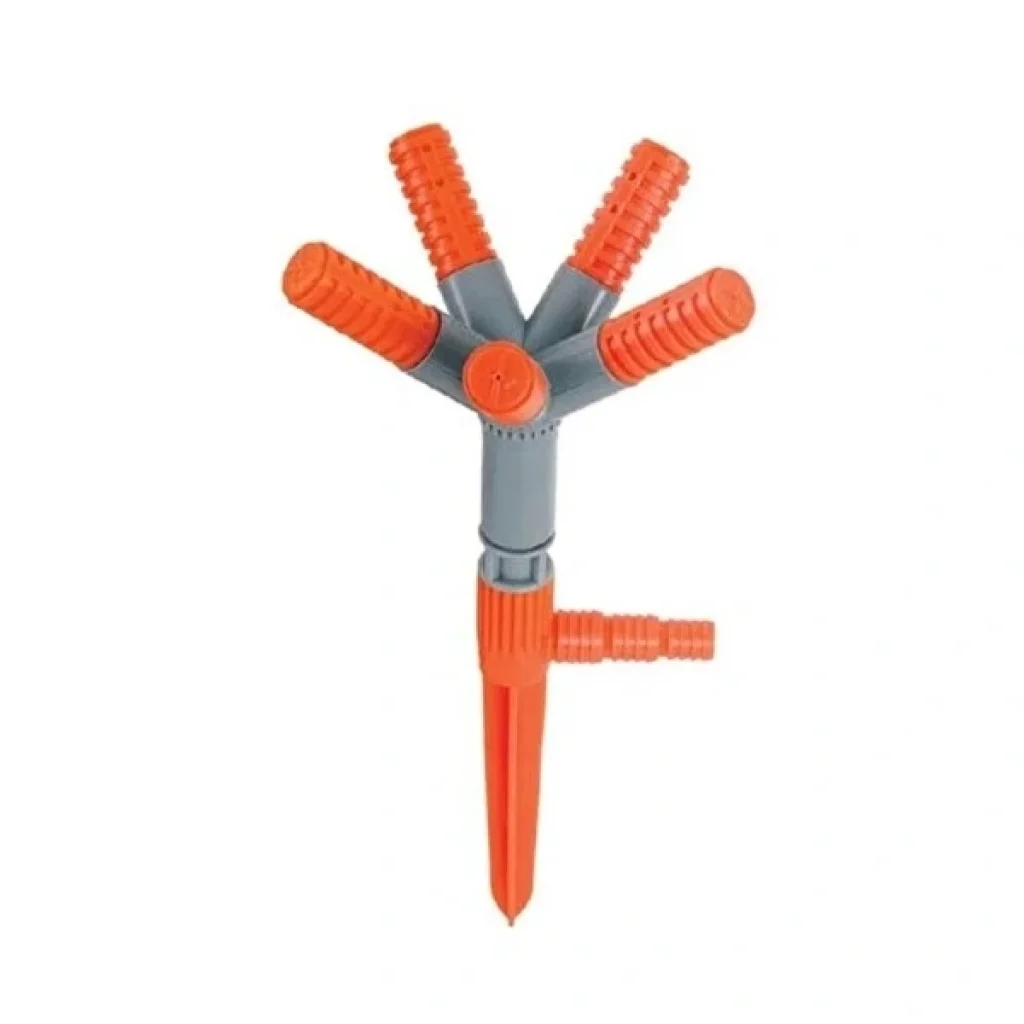 5 YÖNLÜ SAPLAMALI SPRİNK FISKİYEÜrün Özellikleri5 yönlü saplamalı sprink fıskiye, geniş alanlarda homojen ve çok yönlü sulama imkânı sunar. Beş ayrı çıkış başlığı sayesinde suyu farklı yönlere dağıtarak maksimum kapsama sağlar. 360 derece dönebilen yapısı ile tarlalarda, bahçelerde, çim alanlarda ve sera sulamalarında etkili sonuçlar verir. Alt kısmındaki sivri saplama atı sayesinde toprağa kolayca sabitlenir. 1/2", 5/8" ve 3/4" hortum bağlantılarına uyumlu girişiyle farklı hortum tipleriyle kullanılabilir. Yüksek kaliteli plastikten üretilmiş olan bu fıskiye, dış etkilere karşı dayanıklıdır ve uzun ömürlü kullanım sunar. Basit kurulumu ve verimli sulama özelliğiyle profesyonel ya da hobi amaçlı kullanım için uygundur.Paket İçeriği1 Adet 5 Yönlü Saplamalı Sprink Fıskiye