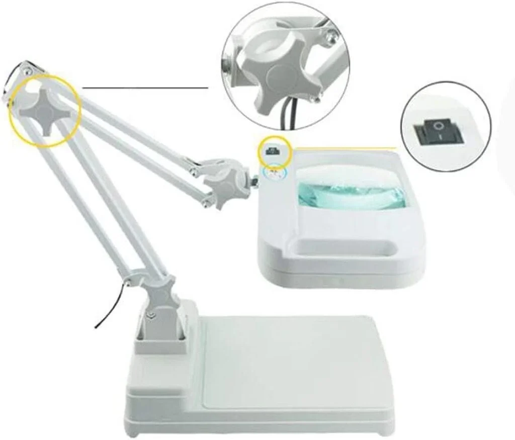 Hattatlar, saat ustaları, kuyumcular ve daha fazlası bu dikey büyütecin ışığına dalmış durumda. Tamir, el işi, hobi ve sanat için mükemmel olan ince baskıları ve ayrıntıları aydınlatmaya ve büyütmeye yardımcı olur ve hayatınızı çeşitli şekillerde aydınlatabilir. Uygulama aralığı: Ayaklı bu mükemmel büyüteçli lamba, okuma, çapraz bulmaca, dikiş, tığ işi, tığ işi, kanaviçe işi, boncuk işi, sanat ve zanaat, onarım elektroniği, ahşap işleri, mücevher yapımı veya ticari kullanım için mükemmeldir. İşlev: Yeni elektronik balast devresi, yüksek güç katsayısı, AC:22W ve %80 daha fazla tasarruf sağlar. Flaş ışığı ortadan kaldırmak için yüksek frekanslı aydınlatma Yumuşak, doğal ışık, geniş aydınlatma Malzeme: İthal ABS mühendislik malzemesi Büyütme: 5x 10x Lens Boyutu: 113x177mm Güç: 22W Voltaj: AC 160240V Lümen katsayısı: 160013000 lümen Renk Sıcaklığı: 6500K Ağırlık: Yaklaşık 8,8 lbs (4 Dahil) : 1 x Masaüstü Büyüteç Işığı
