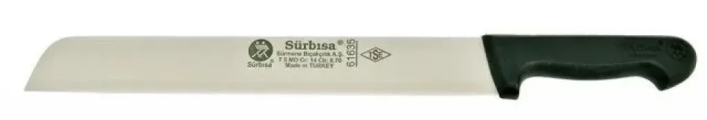 61635, 35 cm uzunluğunda özel bir bıçak olup, özellikle kaşar peyniri ve kavurma gibi malzemelerin kesimi için tasarlanmıştır. Sürmene'nin geleneksel bıçak yapım teknikleriyle üretilmiş bu bıçak, hem sert hem de yumuşak malzemelerin hassas ve etkili bir şekilde kesilmesini sağlar. Uzun ve dayanıklı yapısı, mutfakta profesyonel ve ev kullanımı için mükemmel bir seçimdir.